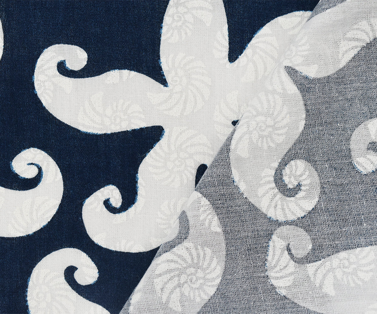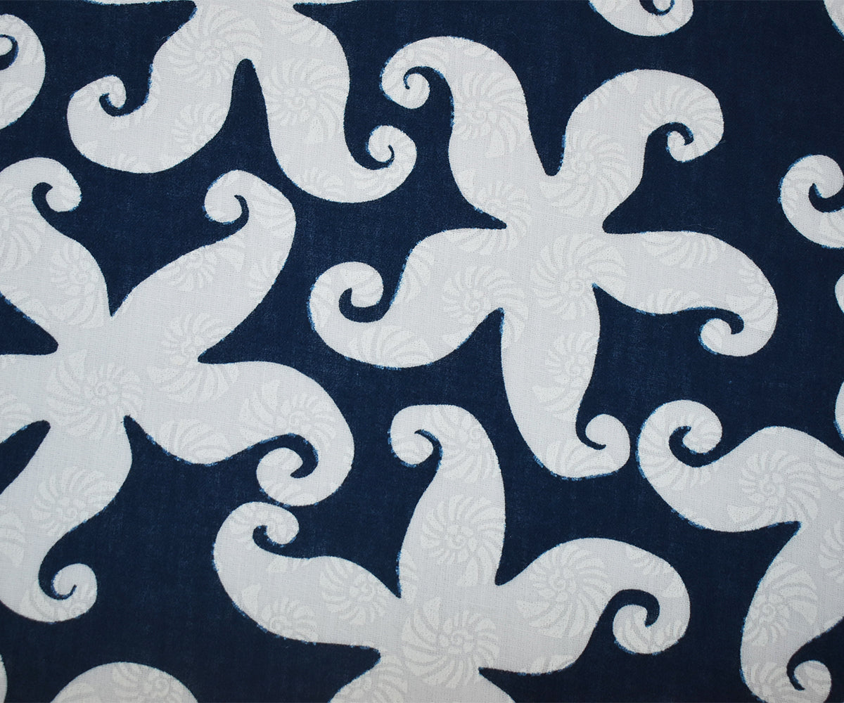 Deep Blue-White Cotton Star Fish-Shell Printed Gauze Woven Fabric