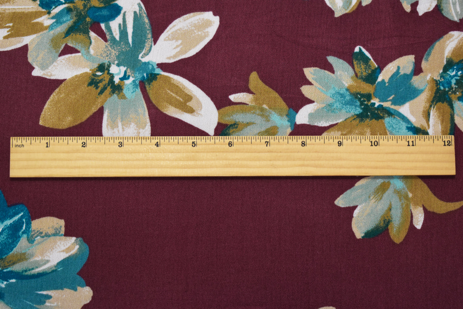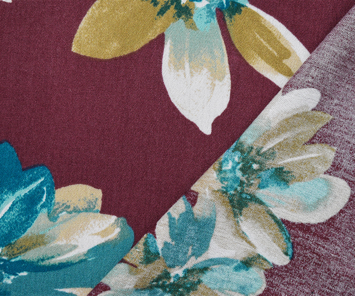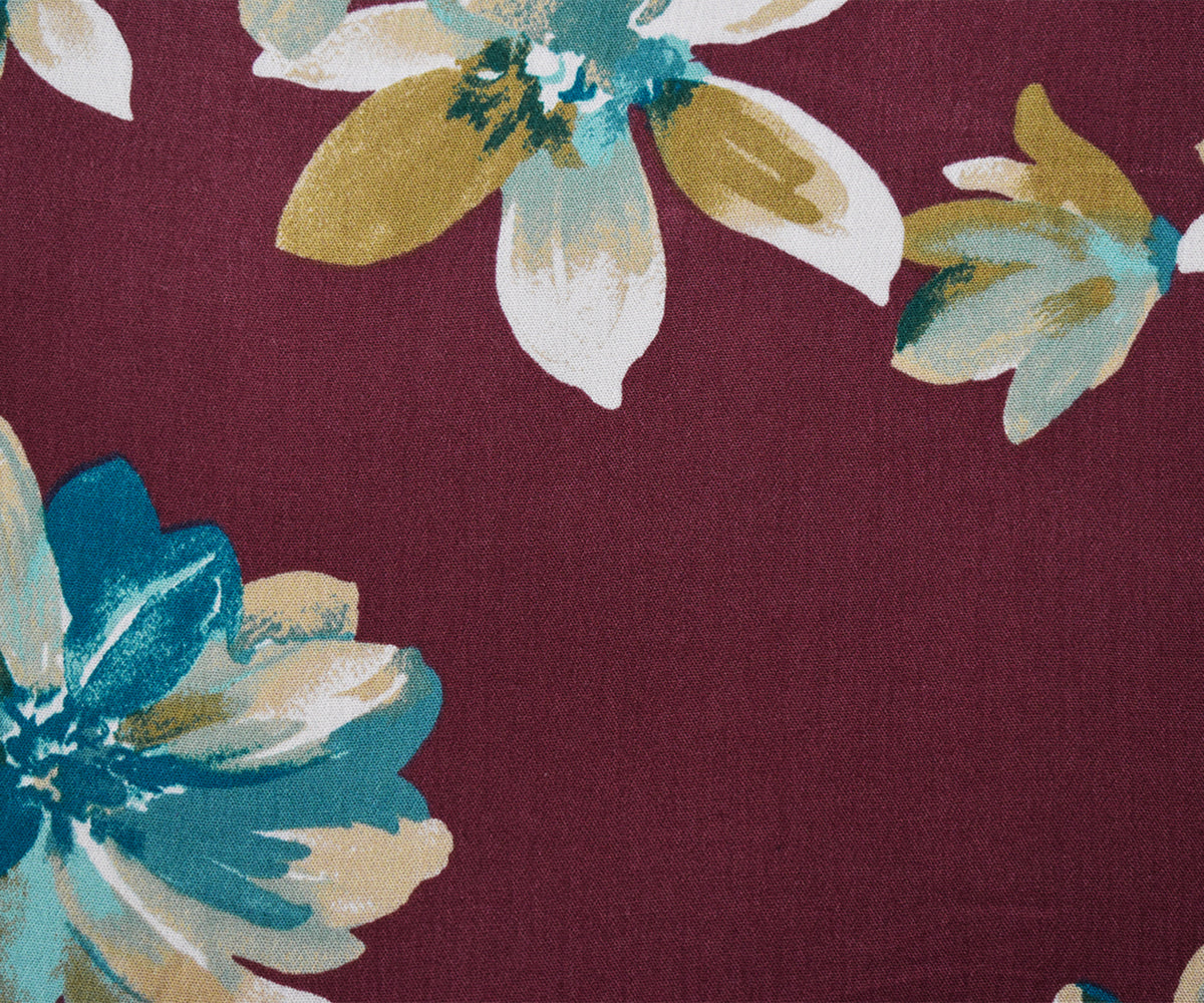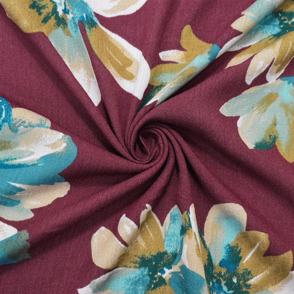 Deep Red-Teal-Multi Cotton-Rayon Floral Printed Gauze Woven Fabric
