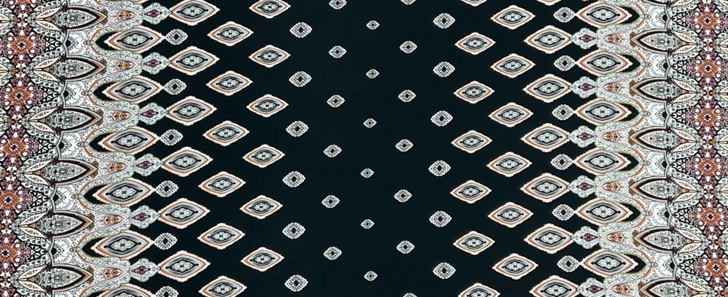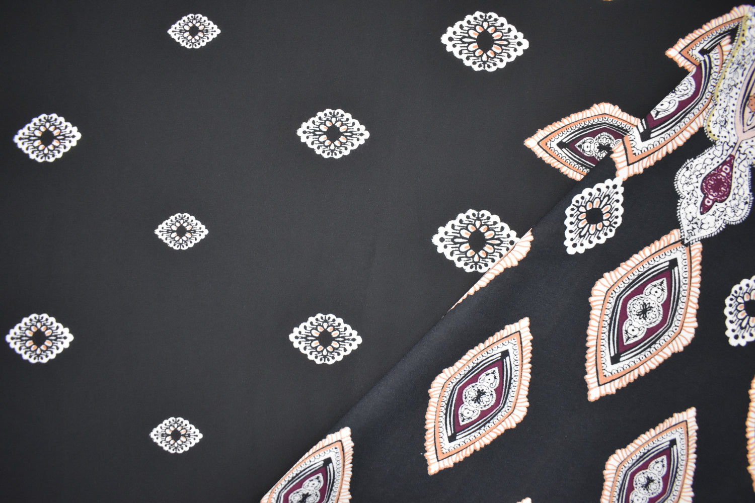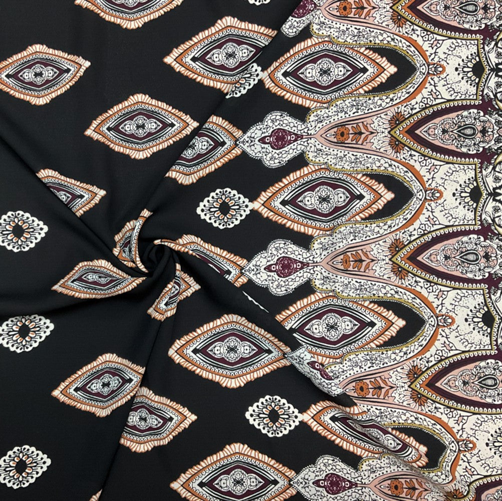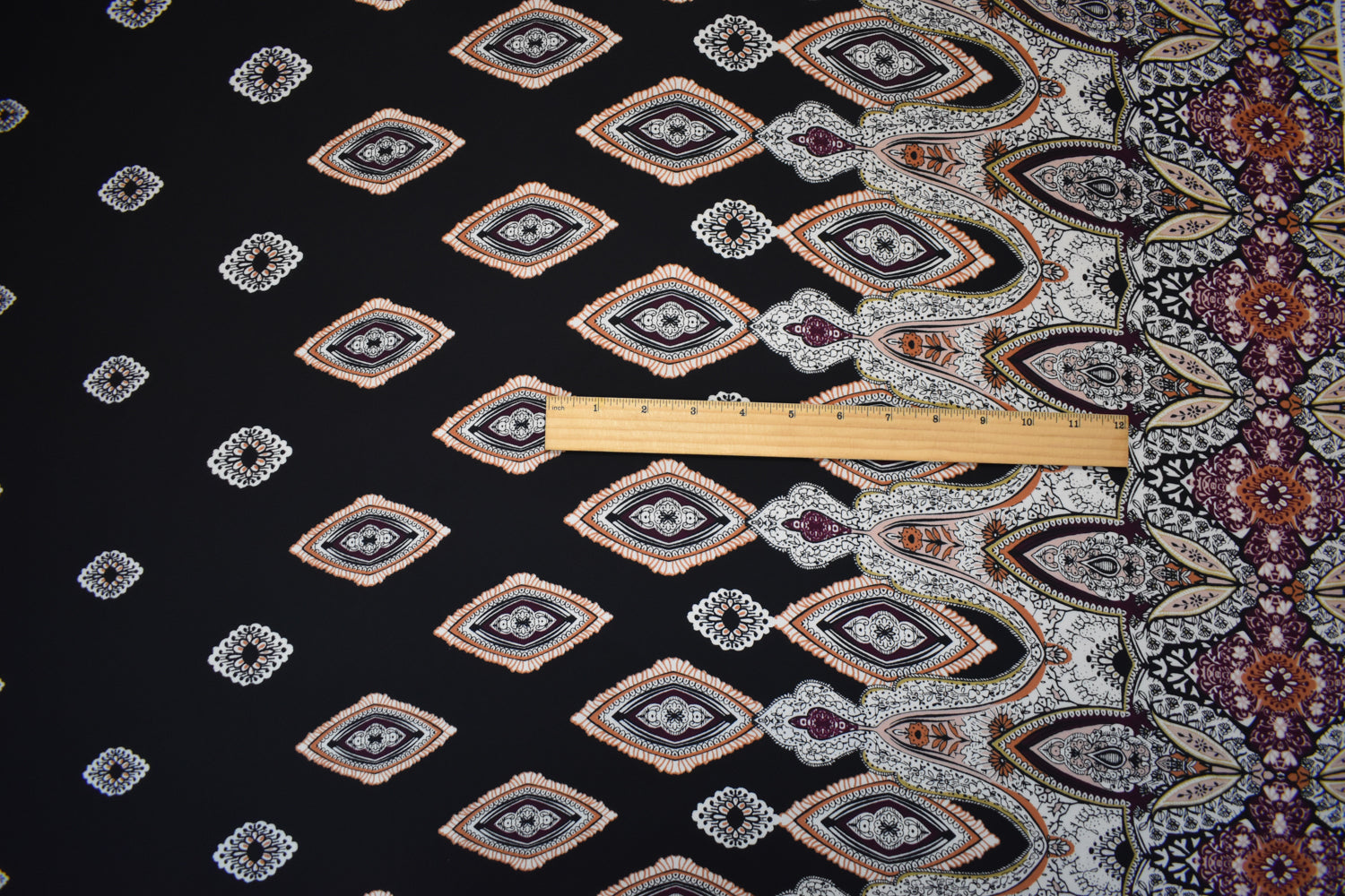 -Black-White-Multi Poly Diamond Paisely Border Printed Georgette Woven Fabric