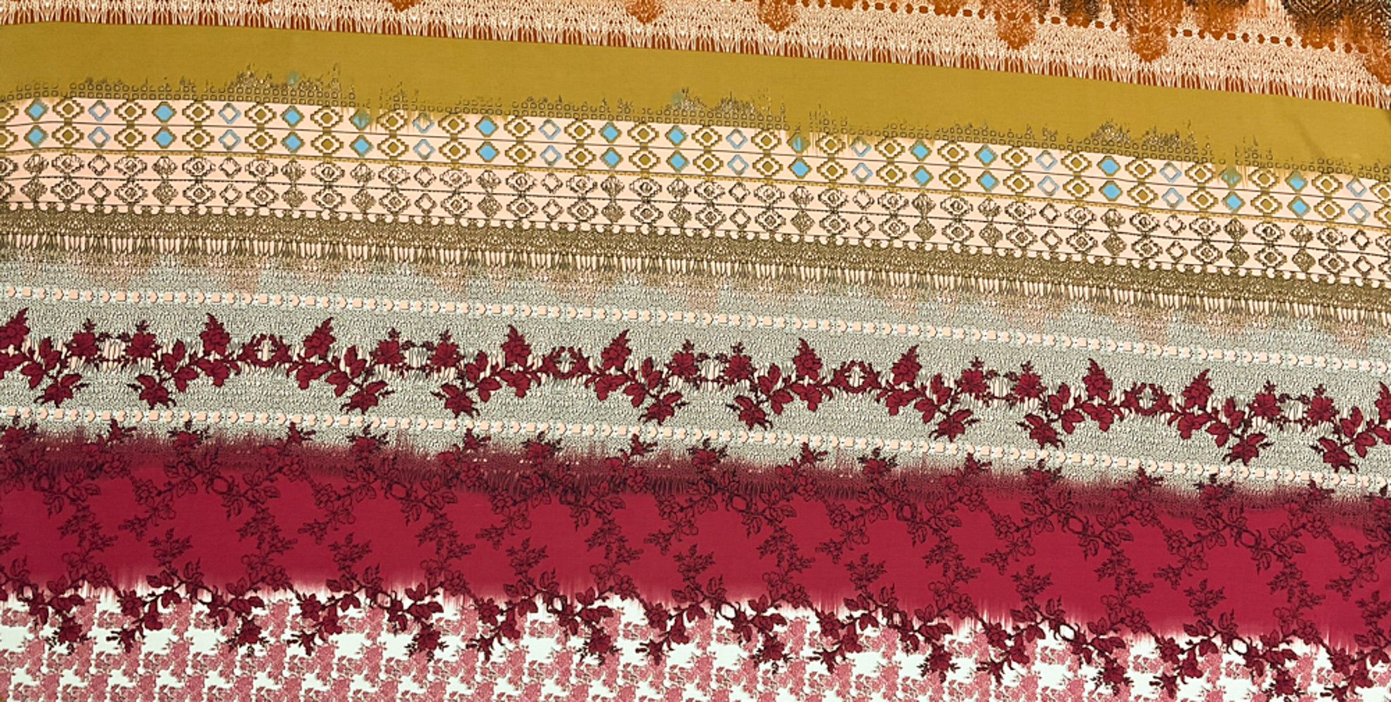 Brown-Red-Multi Poly Stripe Multi Pattern Printed Georgette Woven Fabric