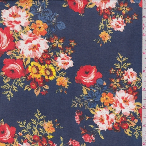 Navy Floral Bouquet Georgette Fabric