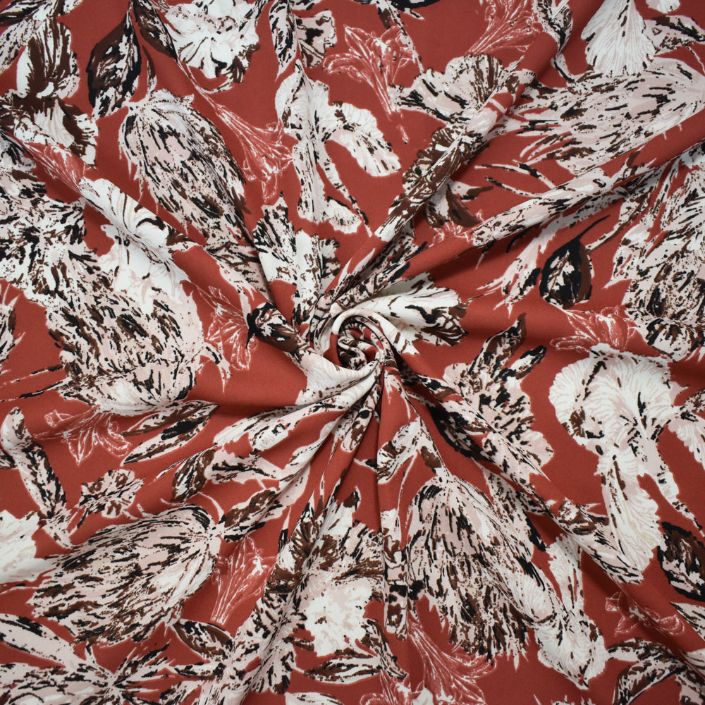 Red-Pink-Multi Poly Abstract Floral Printed Georgette Woven Fabric