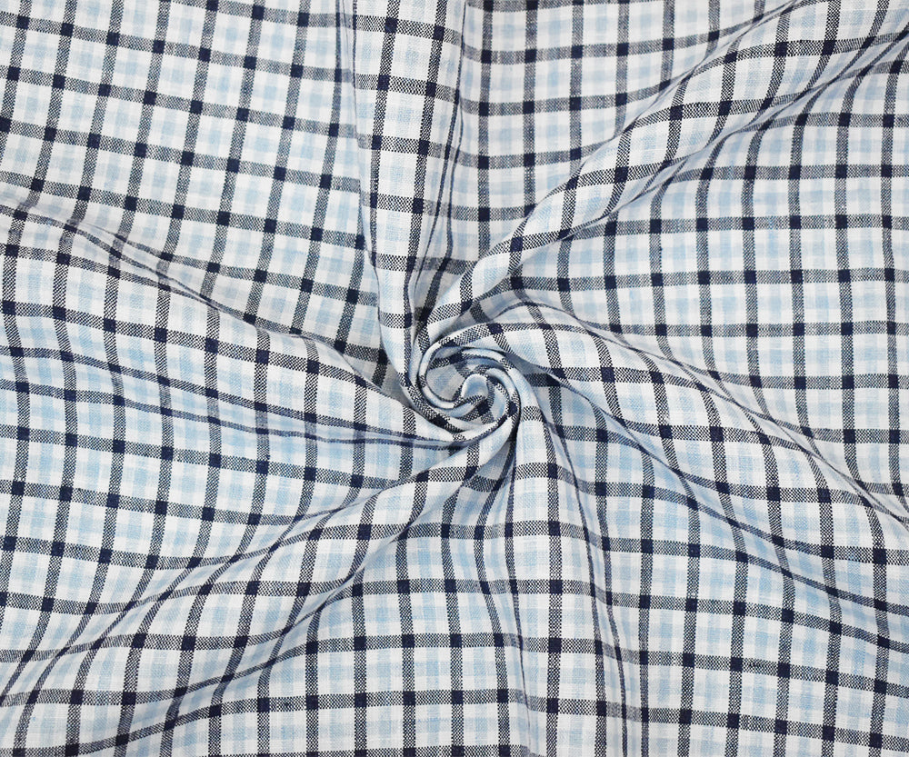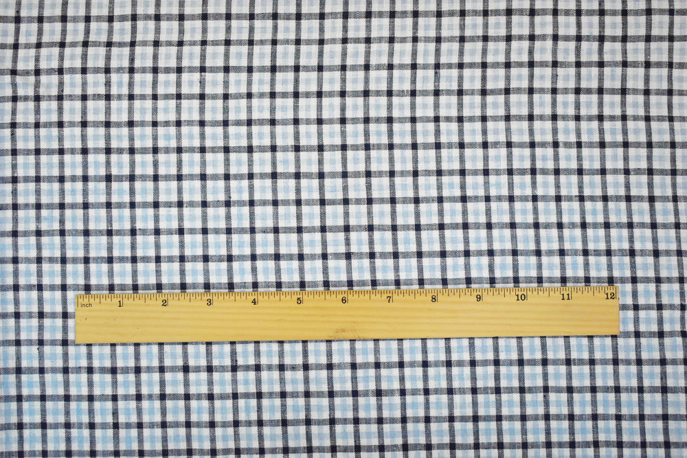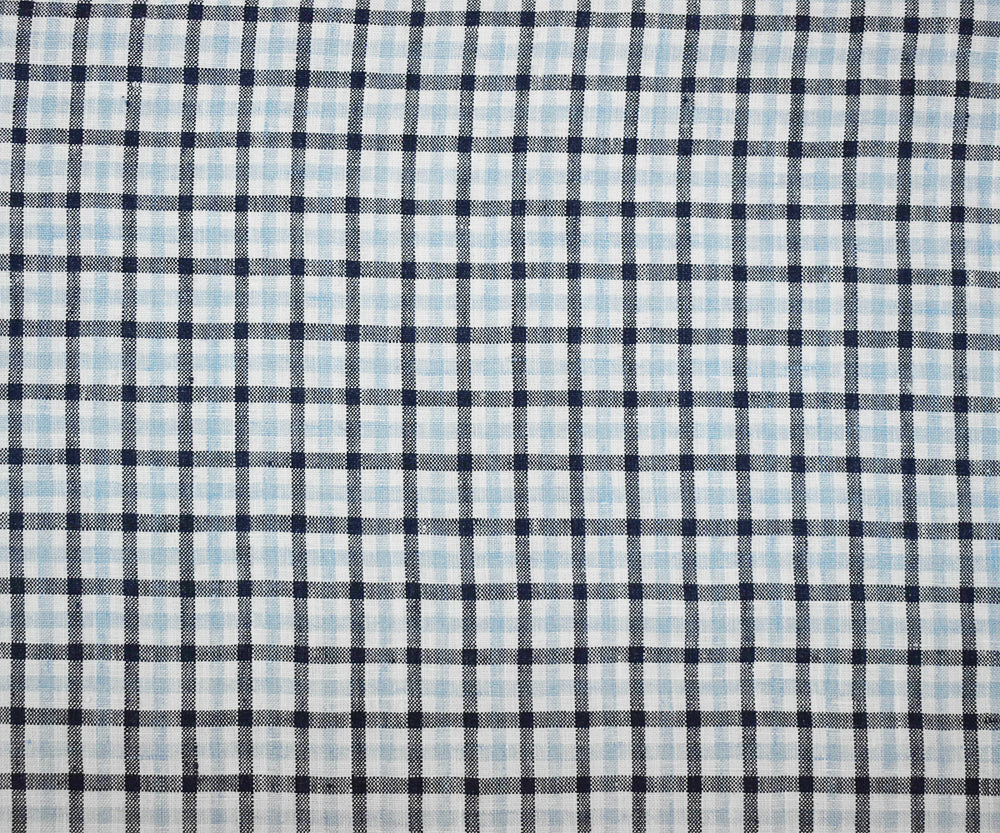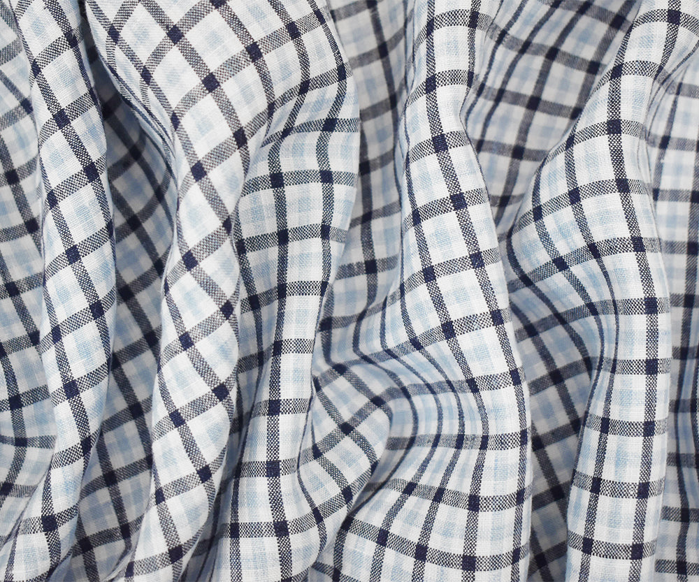 Dark Blue-White Spence Bryson Washed Gingham Plaid Irish Linen Woven Fabric