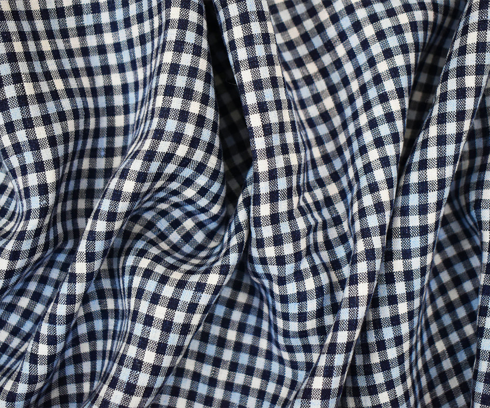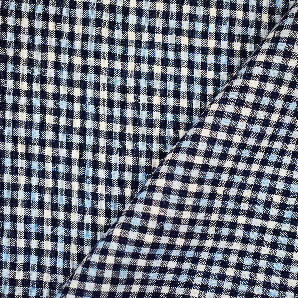 Navy-Blue-White Spence Bryson Washed Gingham Plaid Irish Linen Woven Fabric