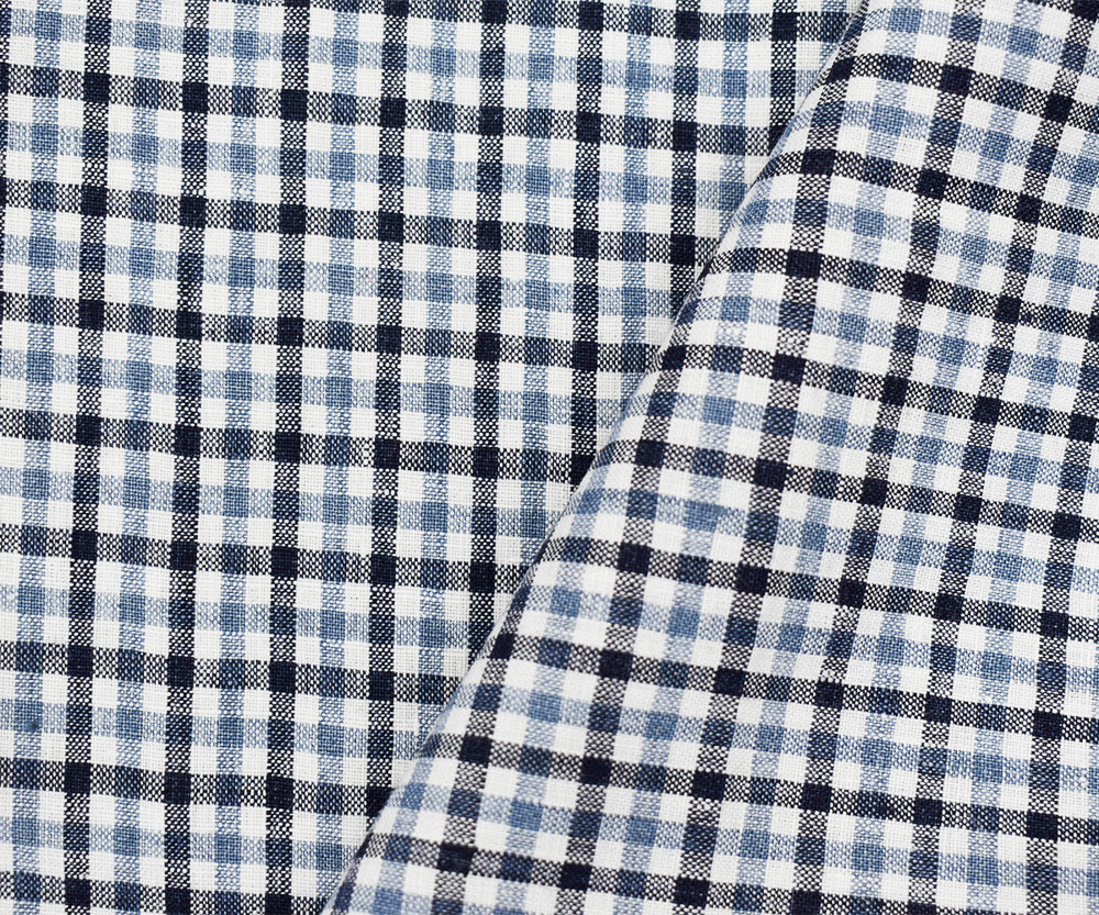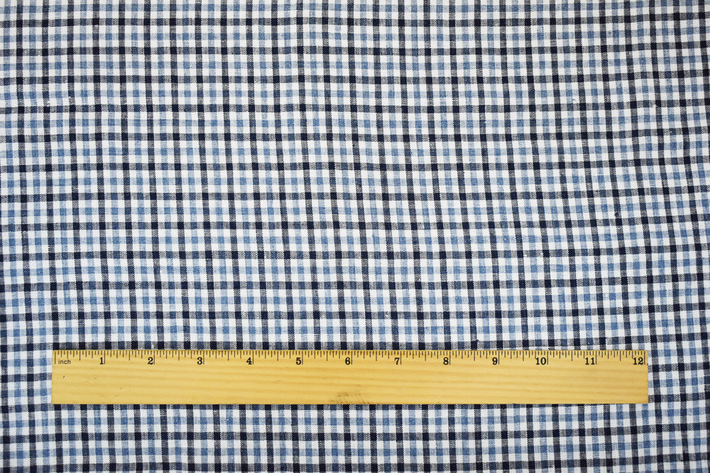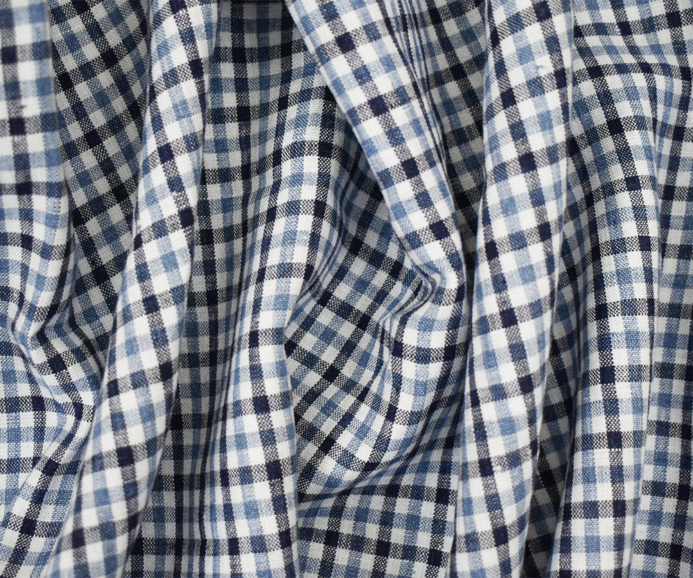 Navy-Blue-White Spence Bryson Washed Gingham Plaid Irish Linen Woven Fabric