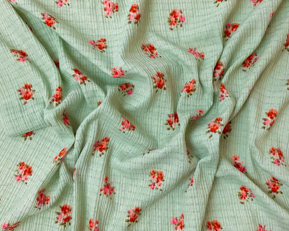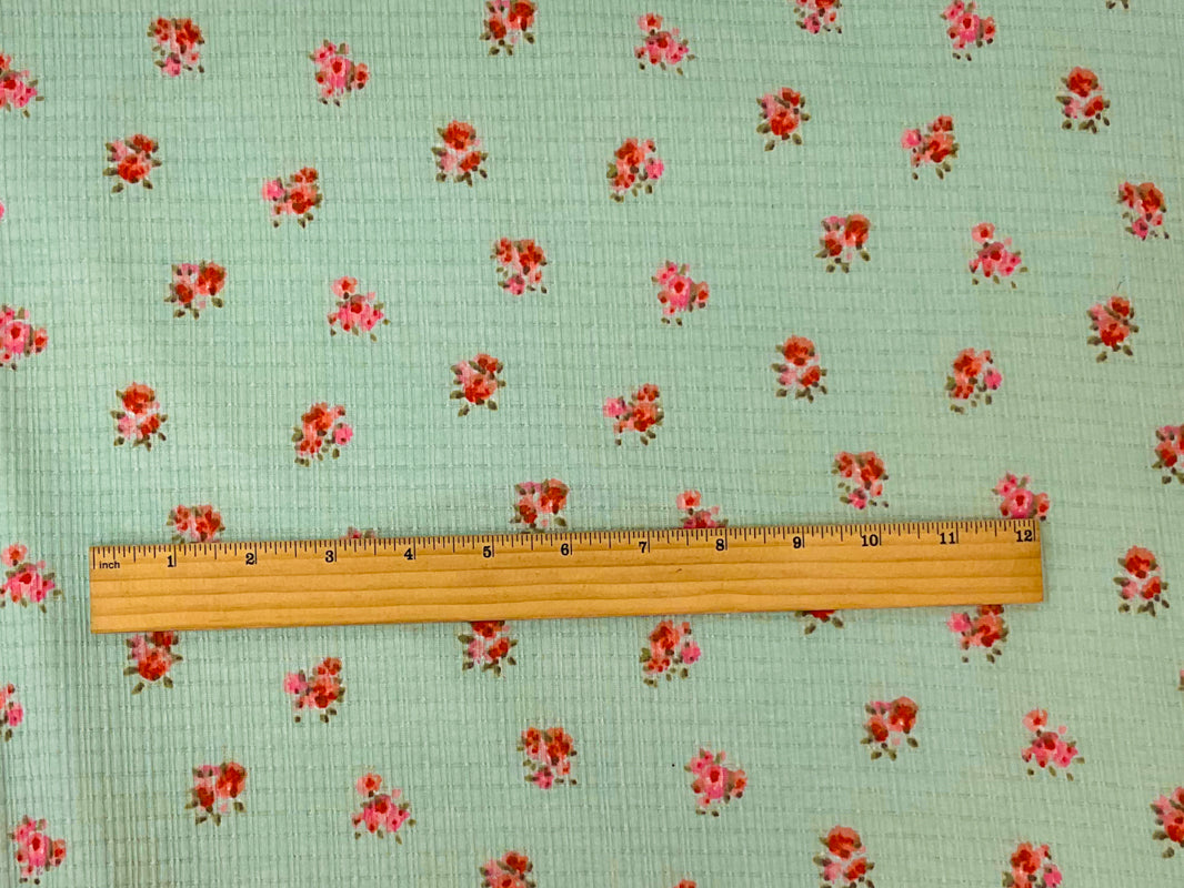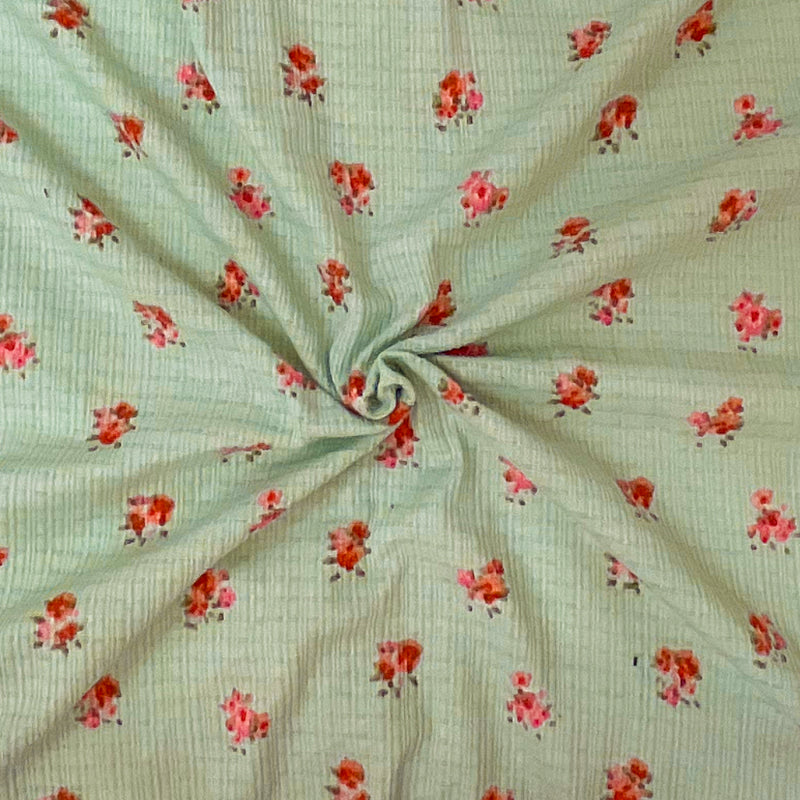 Green-Pink-Red Poly Blend Stretch Floral Printed Rib Knit Fabric