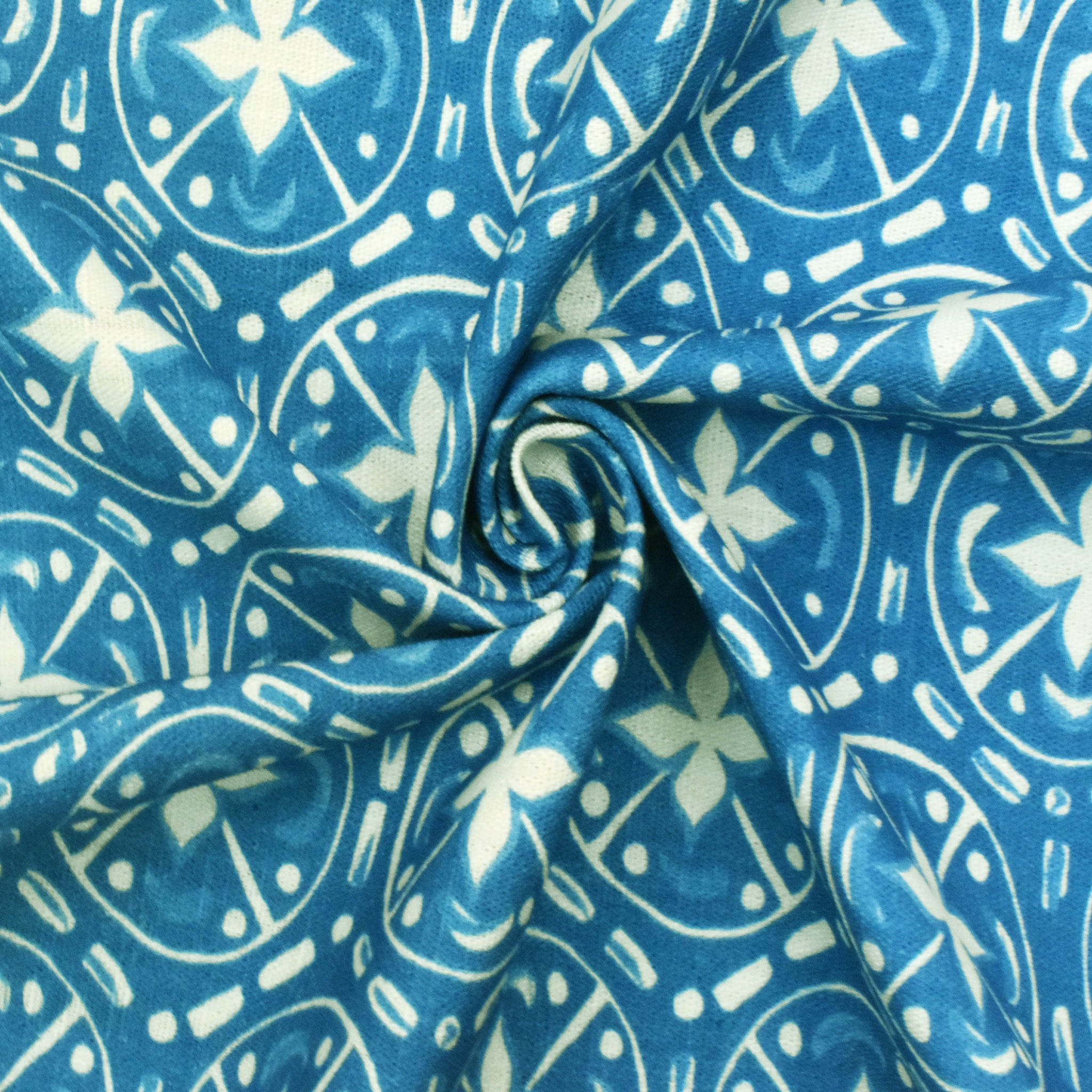 Vacay Blue-Ivory Abstract Tile Printed Slub Home Decorating Fabric