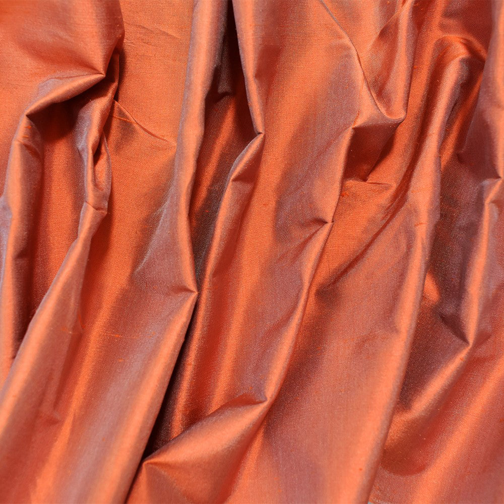 Orange-Blue Beige Silk Iridescent Dupioni Woven Fabric