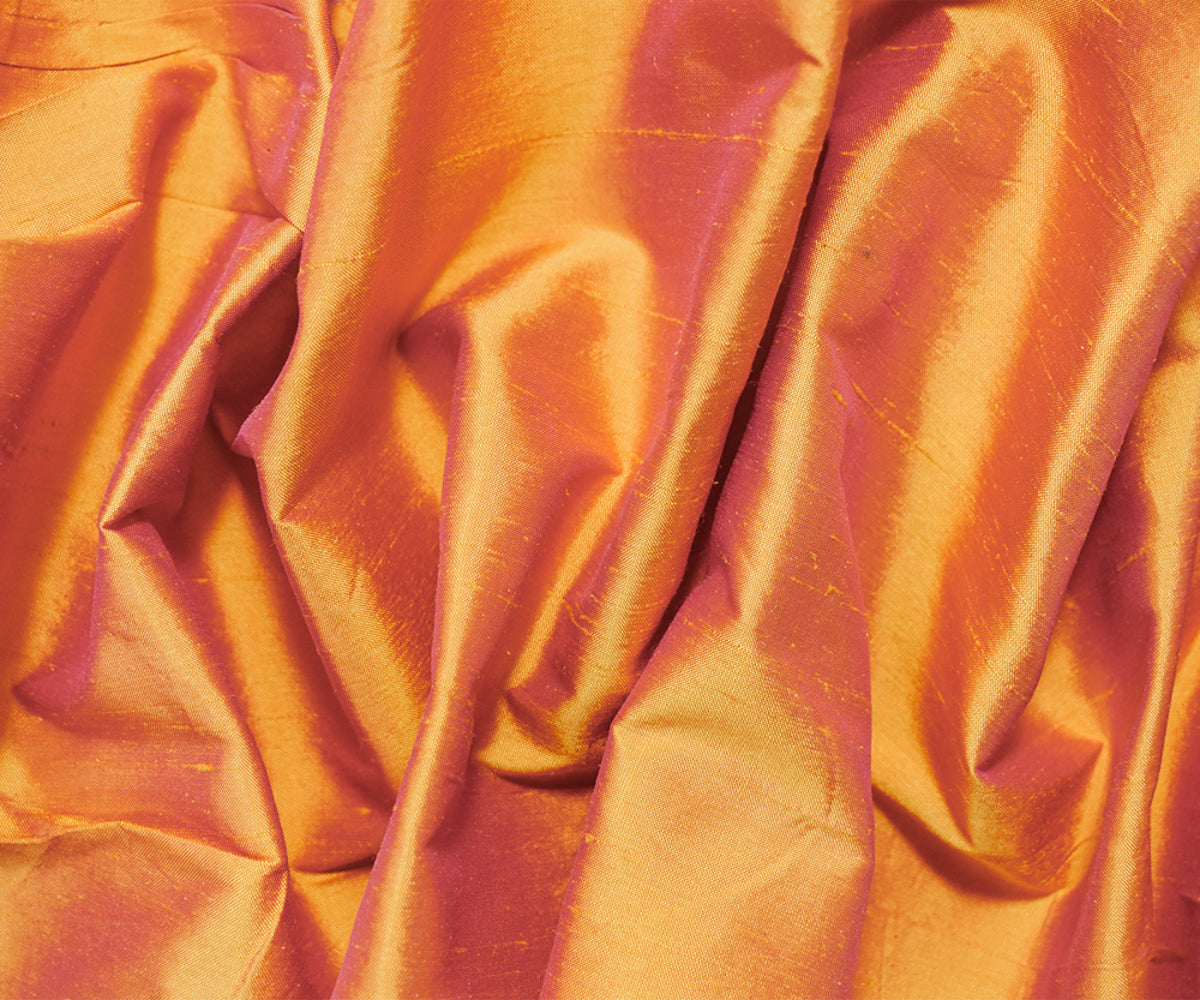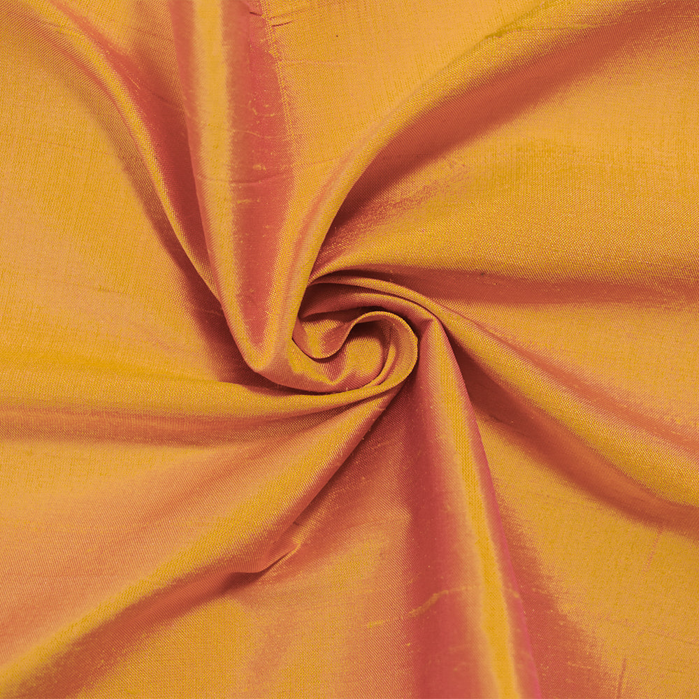 Orange-Pink Iridescent Silk Dupioni Woven Fabric