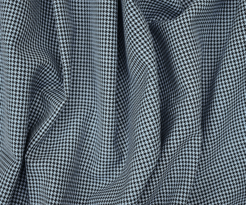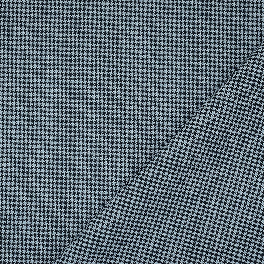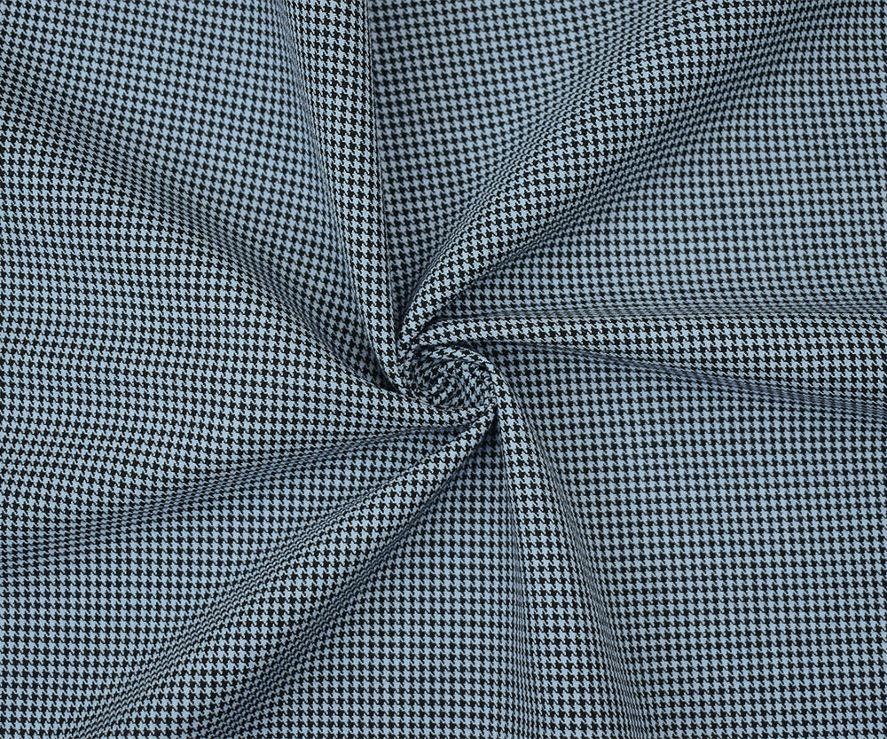 Black-Light Blue Wool Polyester Micro Houndstooth Woven Suiting Fabric