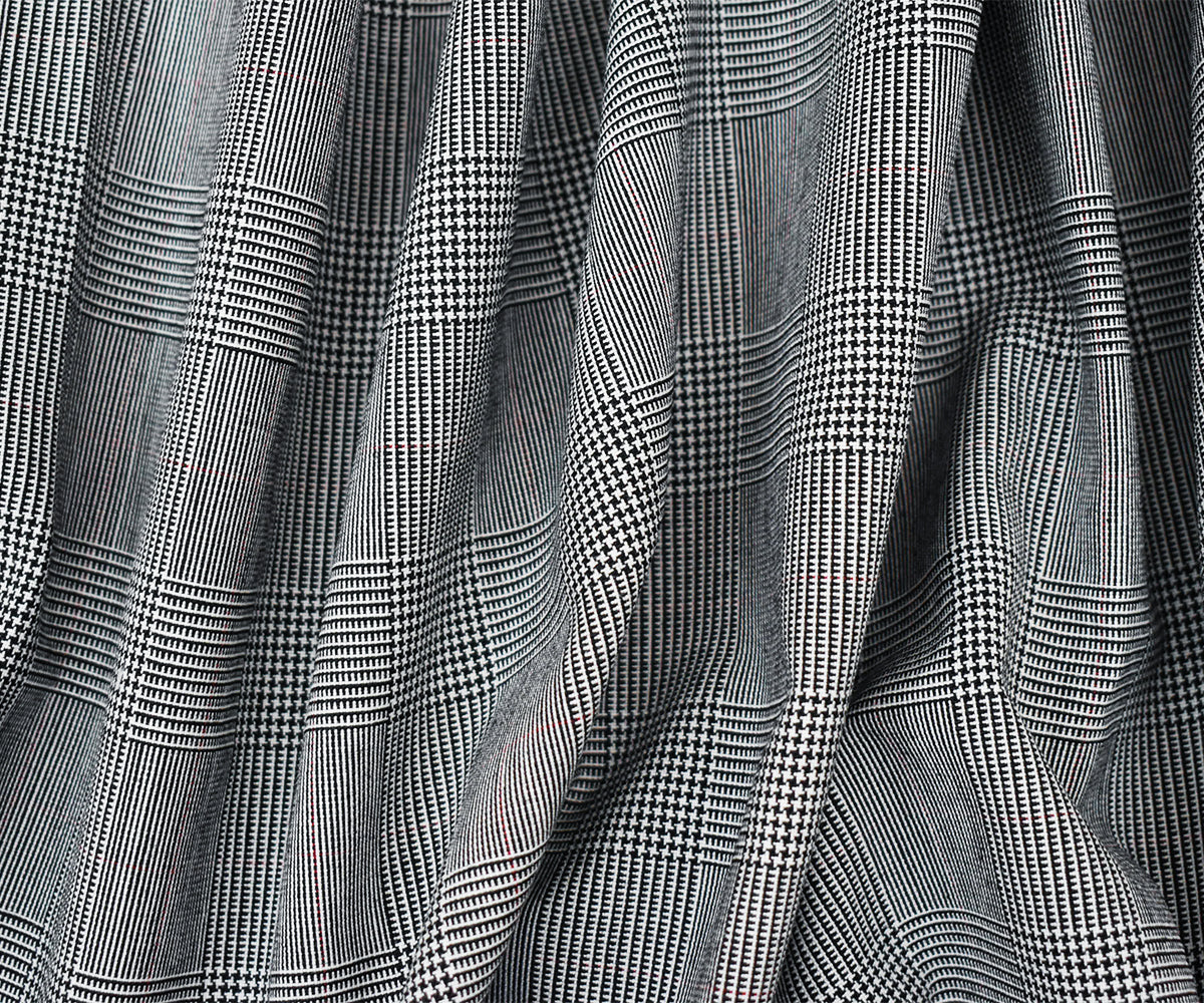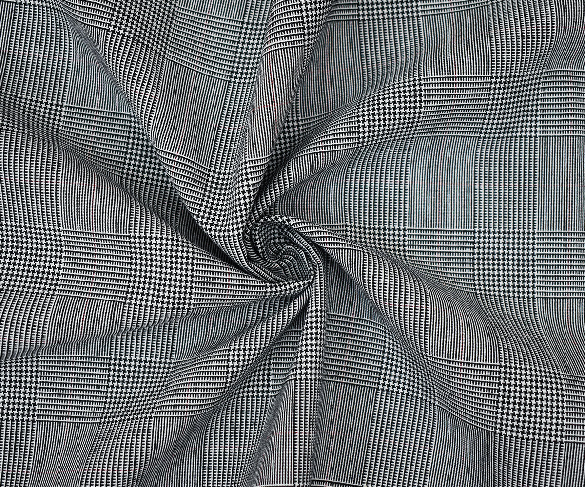 Black-White Poly Wool Glen Plaid Woven Shirting Fabric