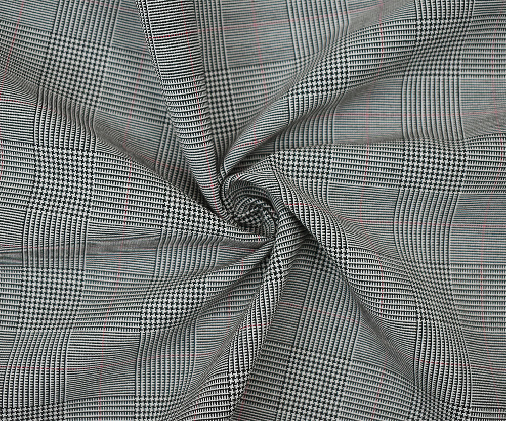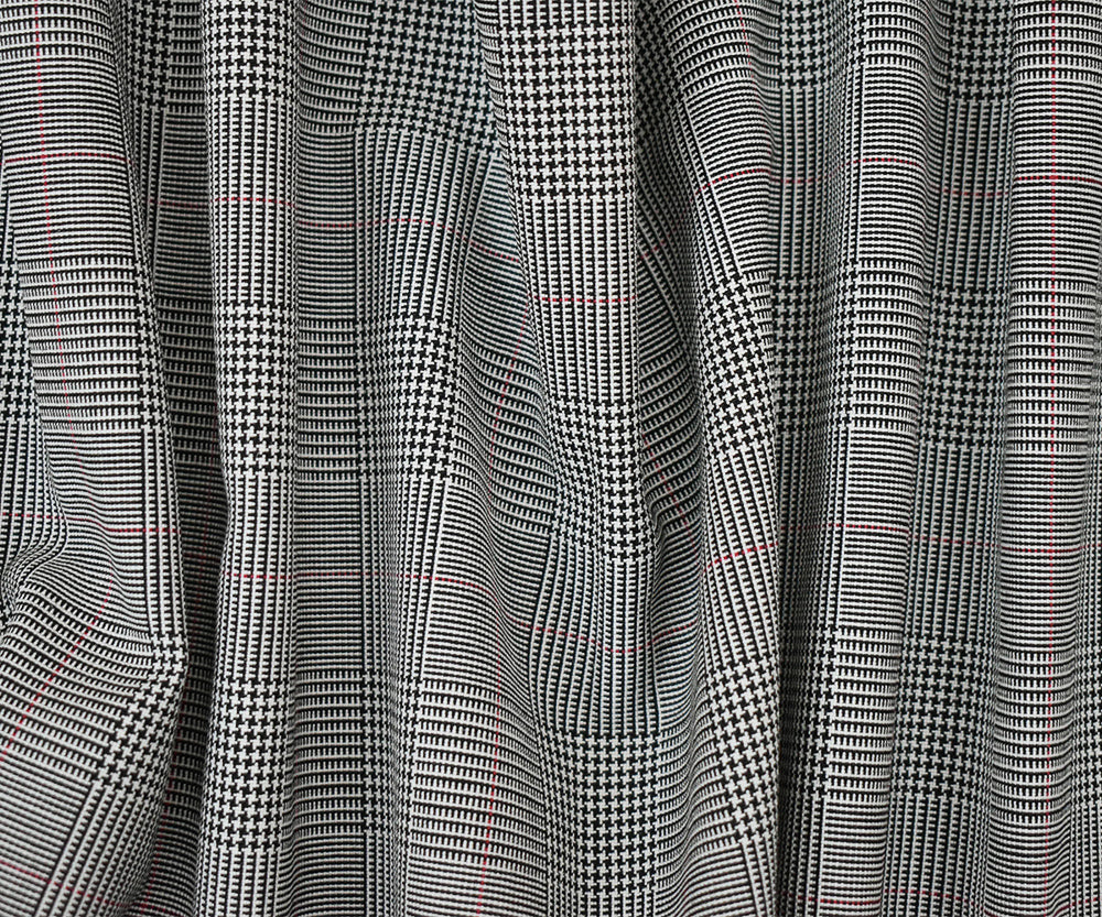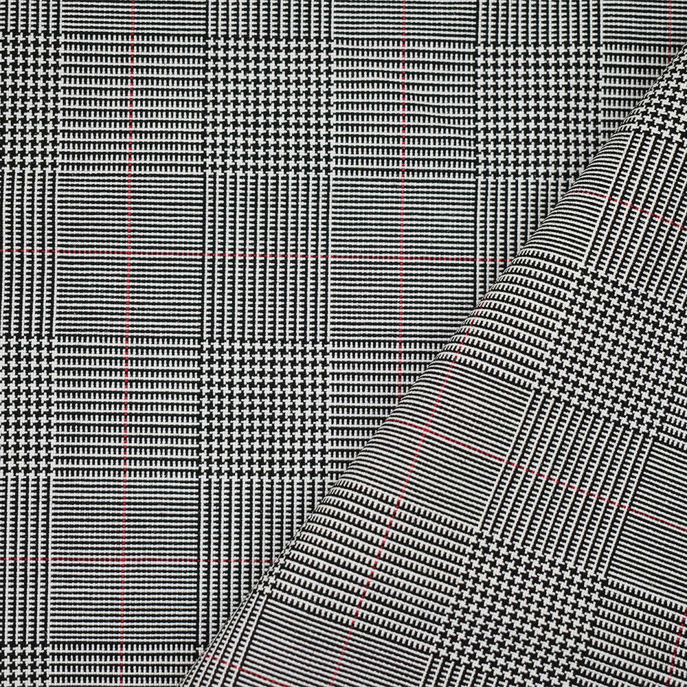 Black-White-Red Polyester Wool Glen Plaid Woven Shirting Fabric