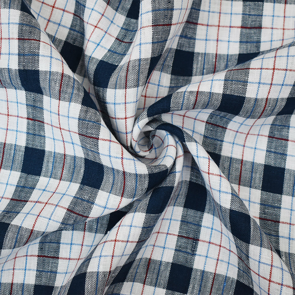 Navy-White-Red Moygashel Washed Plaid Irish Linen Woven Fabric