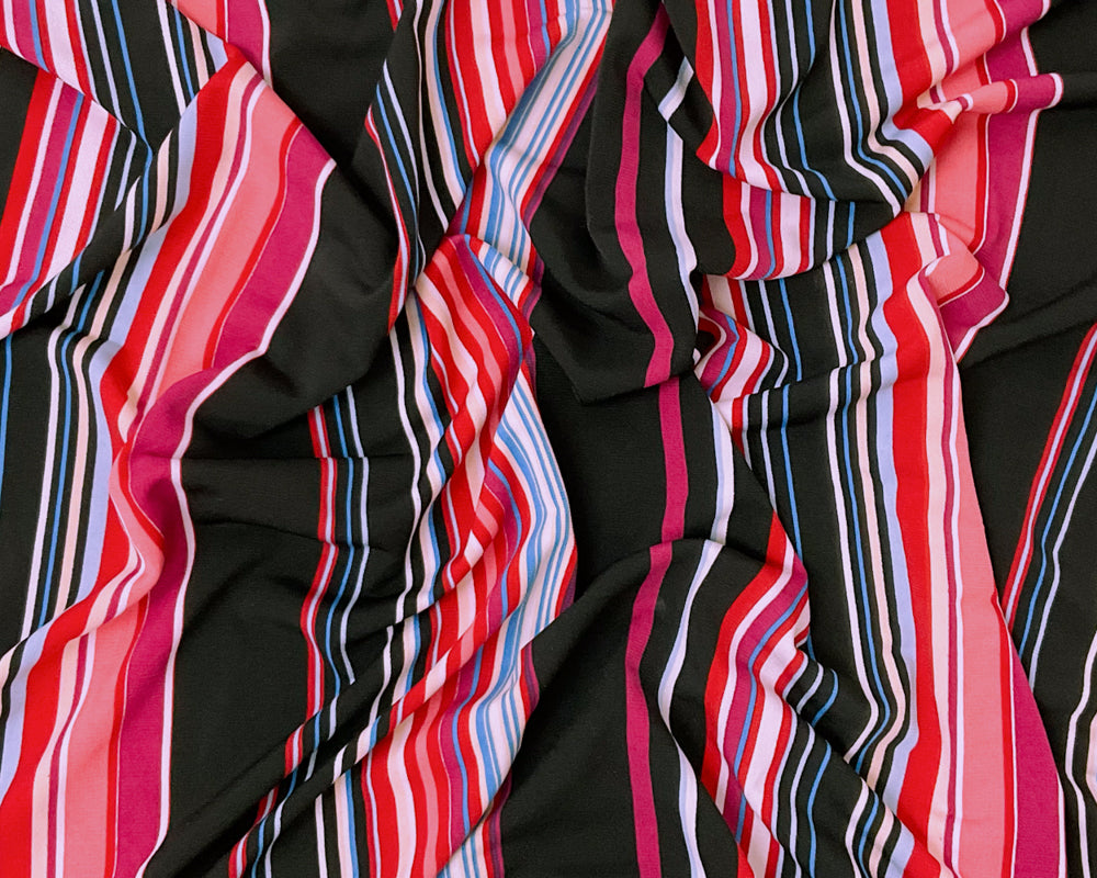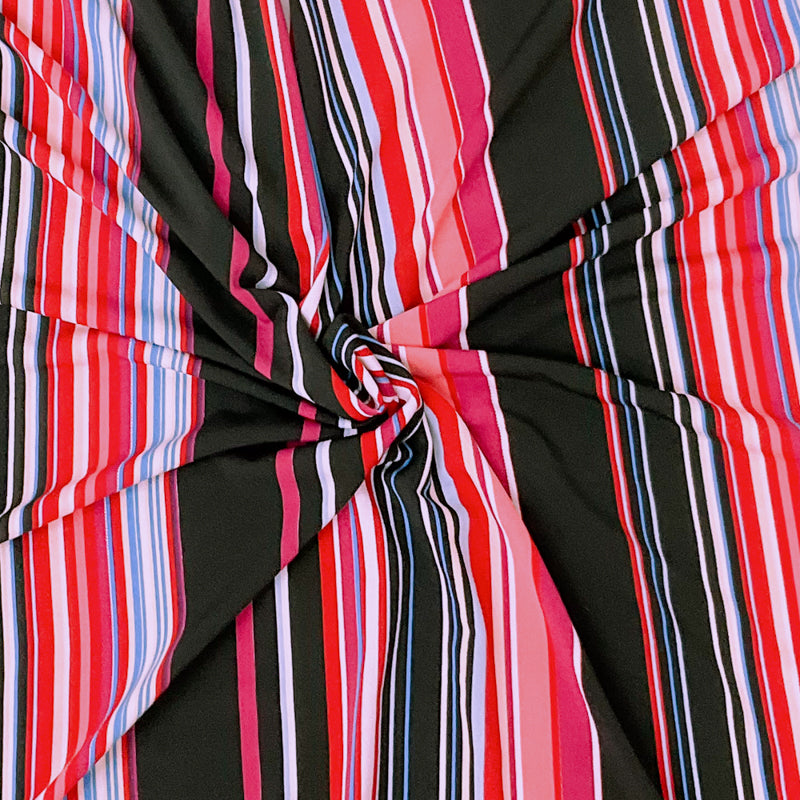 -Black-Red-Multi Poly Stretch Spandex Stripe Printed ITY Jersey Knit Fabric