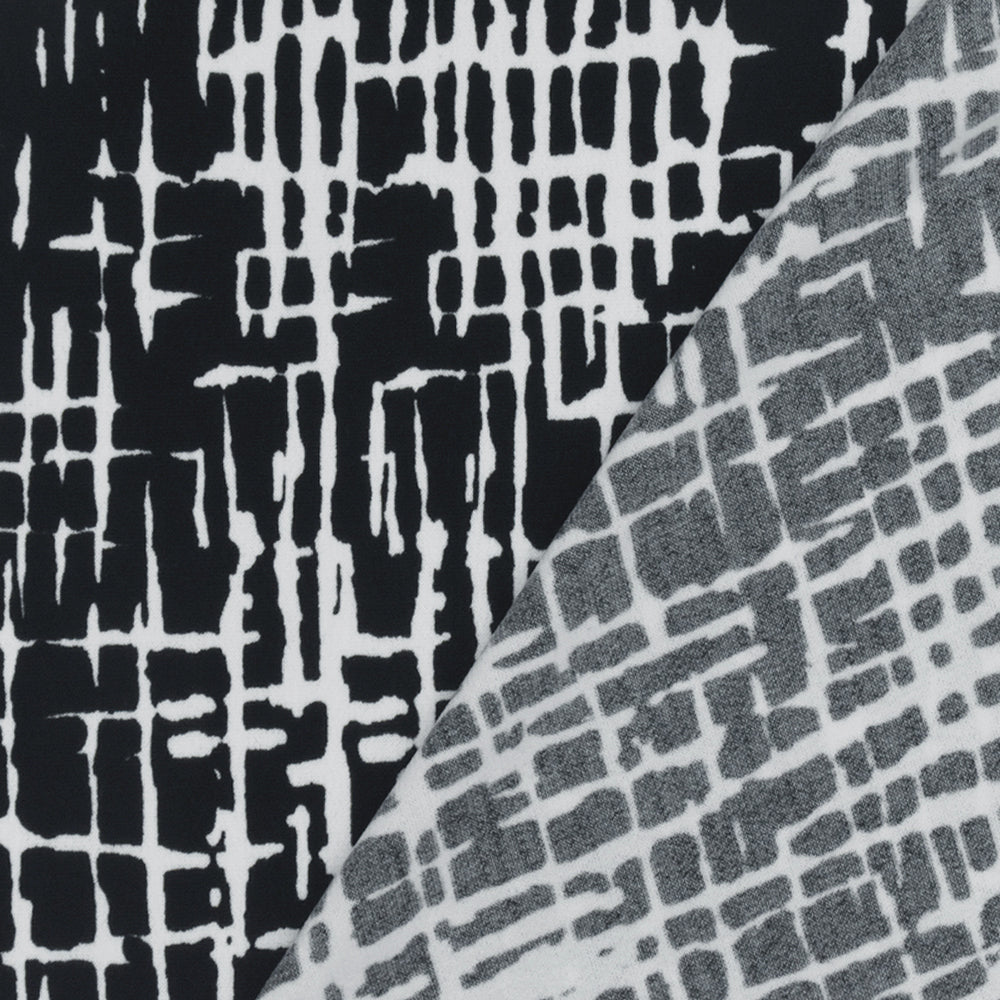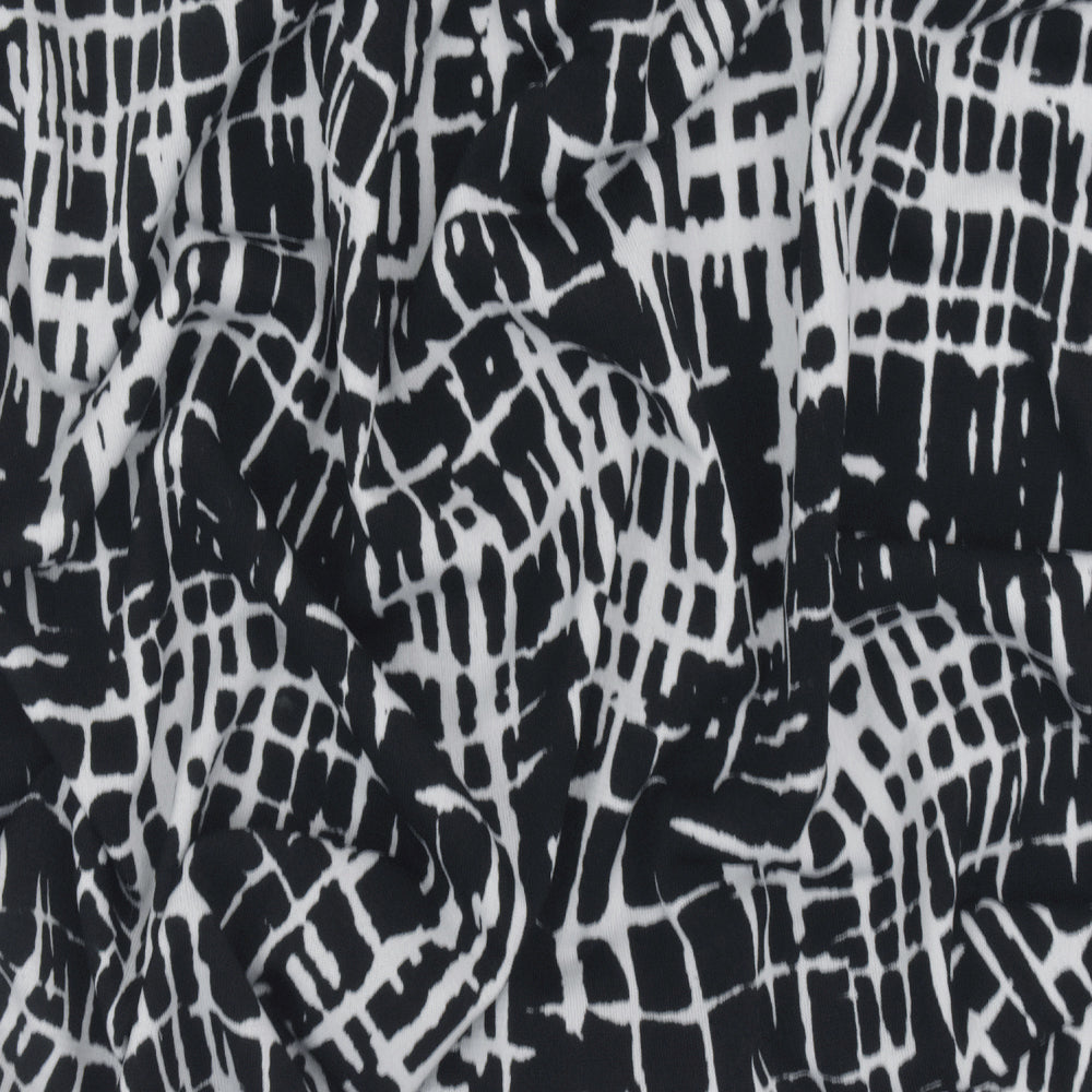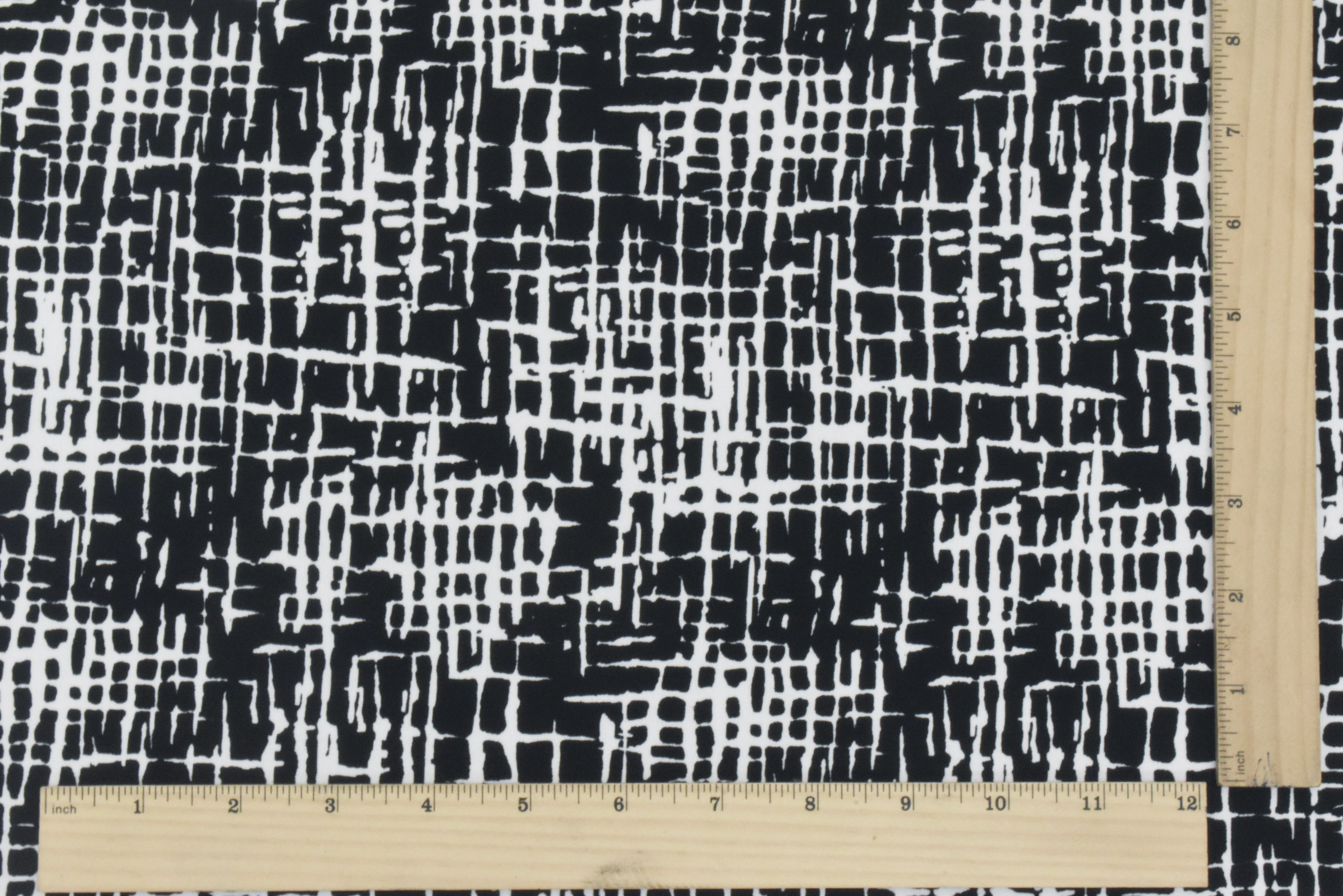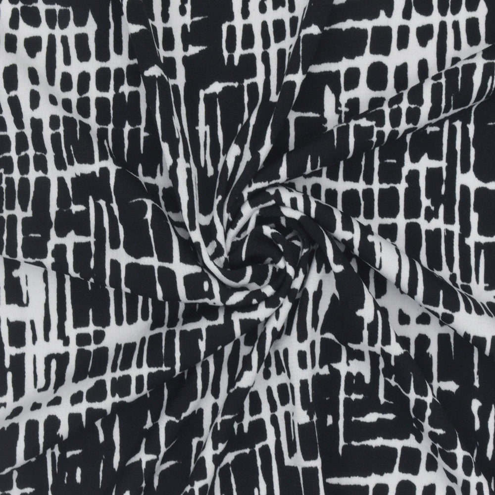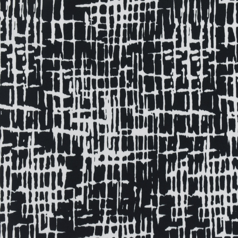 Black-White Famous Designer Abstract Cross Hatch Printed ITY Knit Fabric