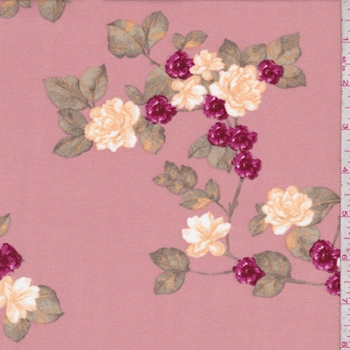 ITY Dusty Salmon Floral Sprig Jersey Knit Fabric