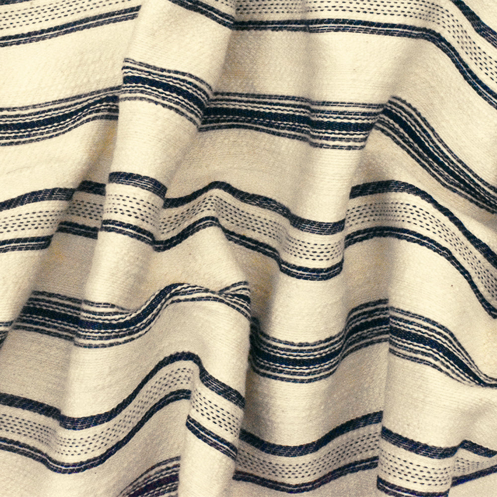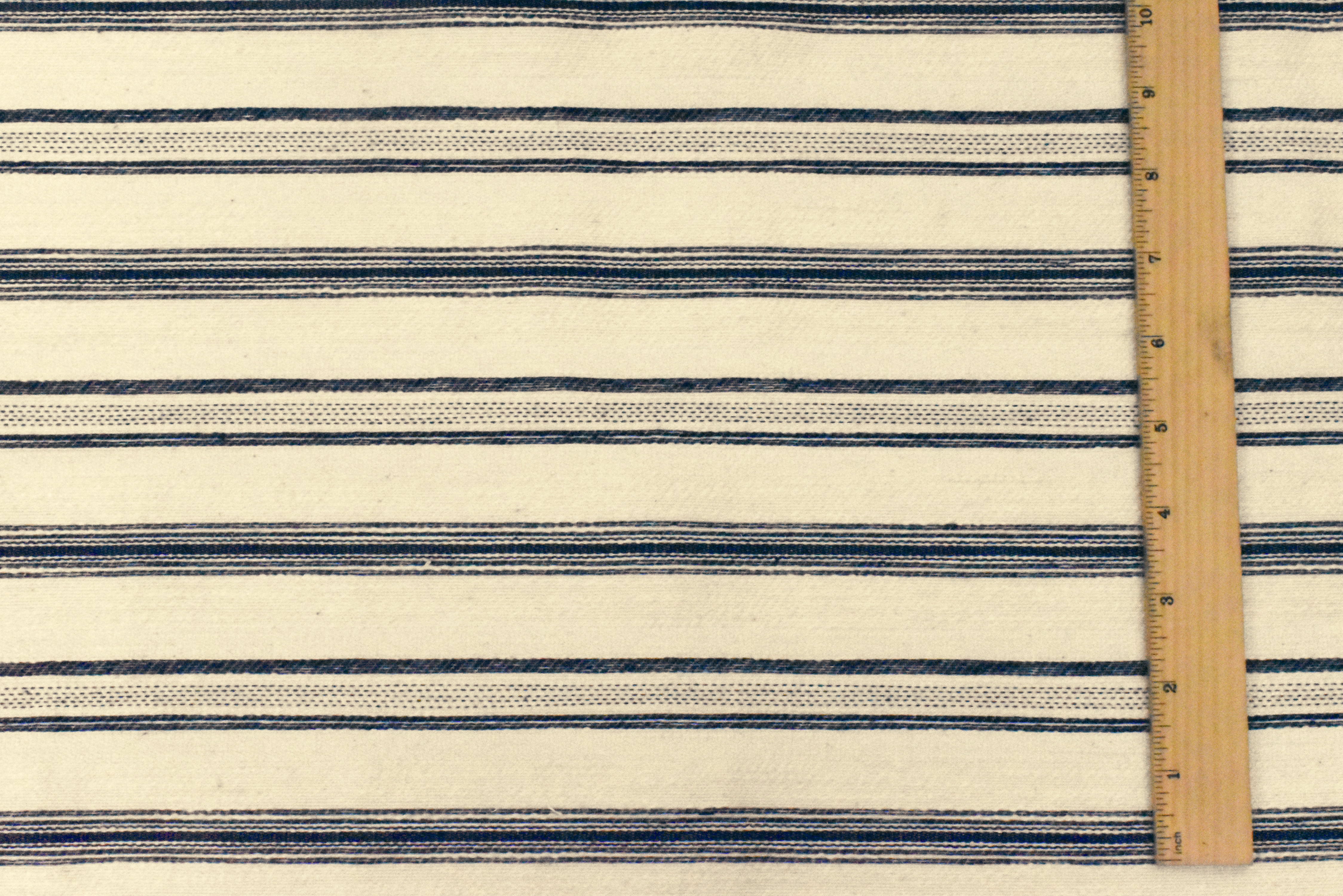 Basic Ivory-Blue Stripe Cotton Polyester Woven Jacketing Fabric