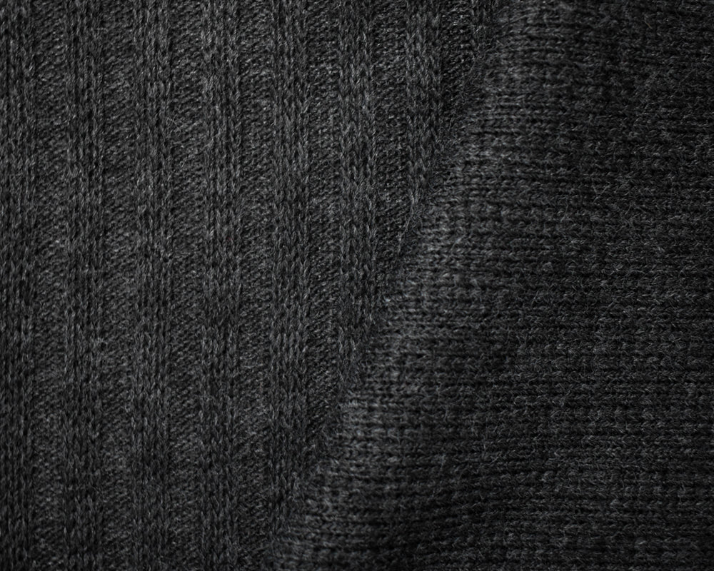 Black-Gray Acrylic Wool Sweater Rib Knit Fabric
