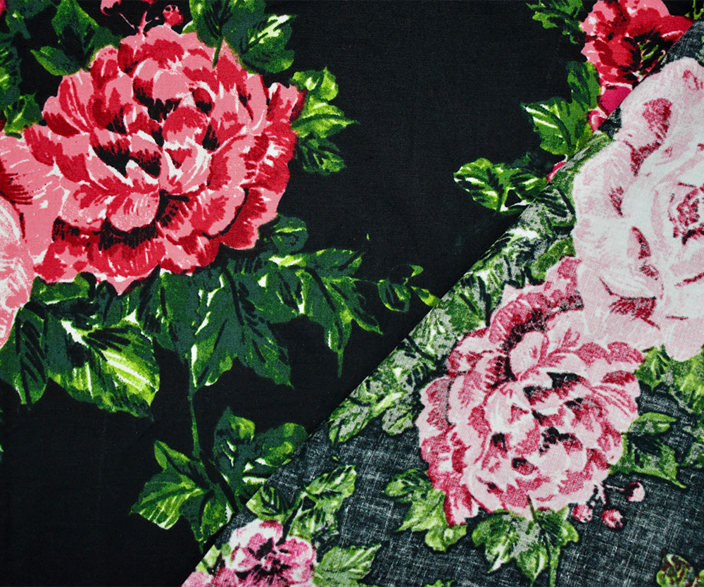 Black-Red-Multi Cotton Floral Printed Stretch Spandex Poplin Woven Fabric