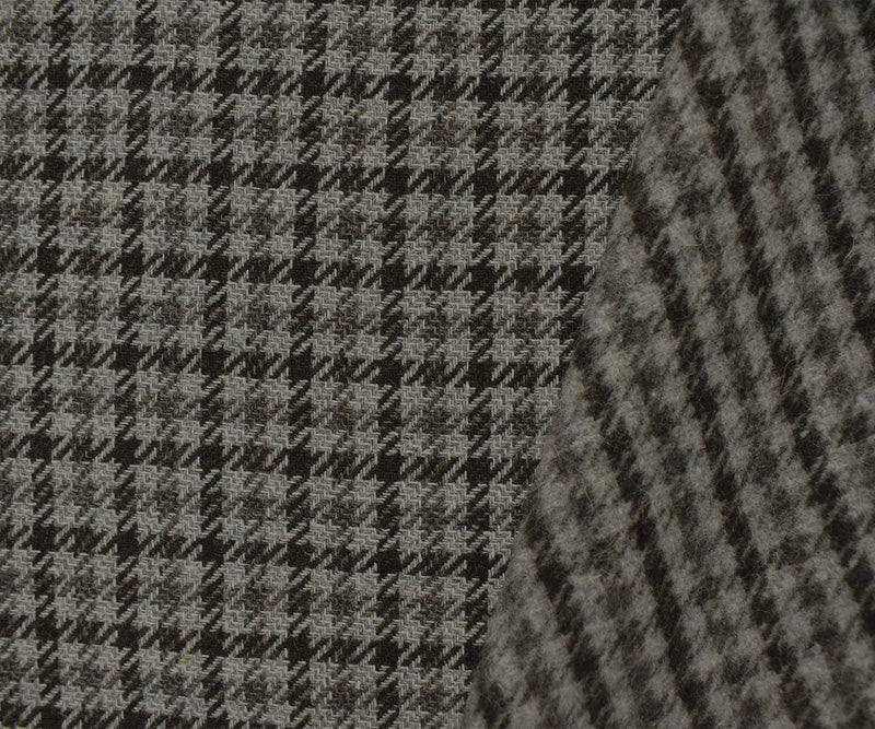 Brown-Multi Wool Poly Houndstooth Twill Woven Jacketing Fabric