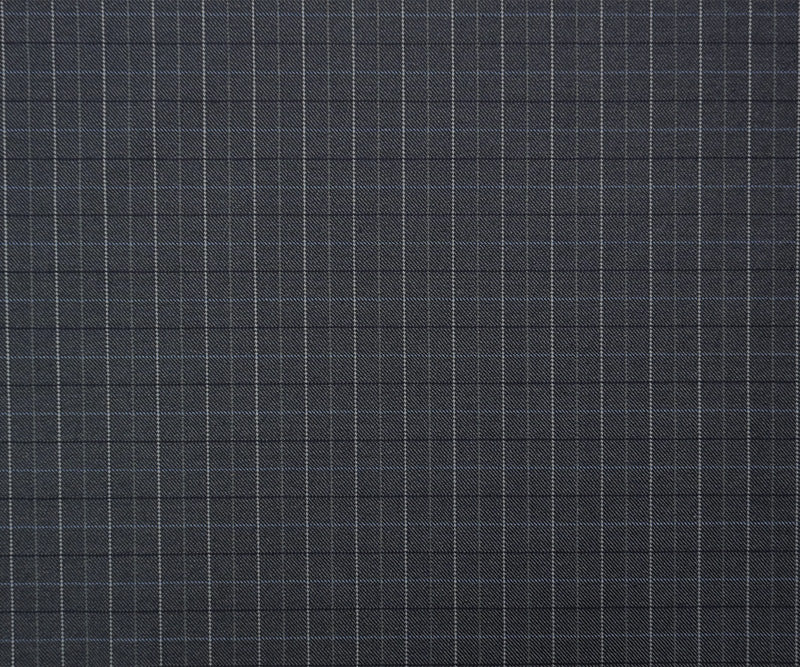 Gray-Blue Wool-Poly Check Twill Suiting Fabric
