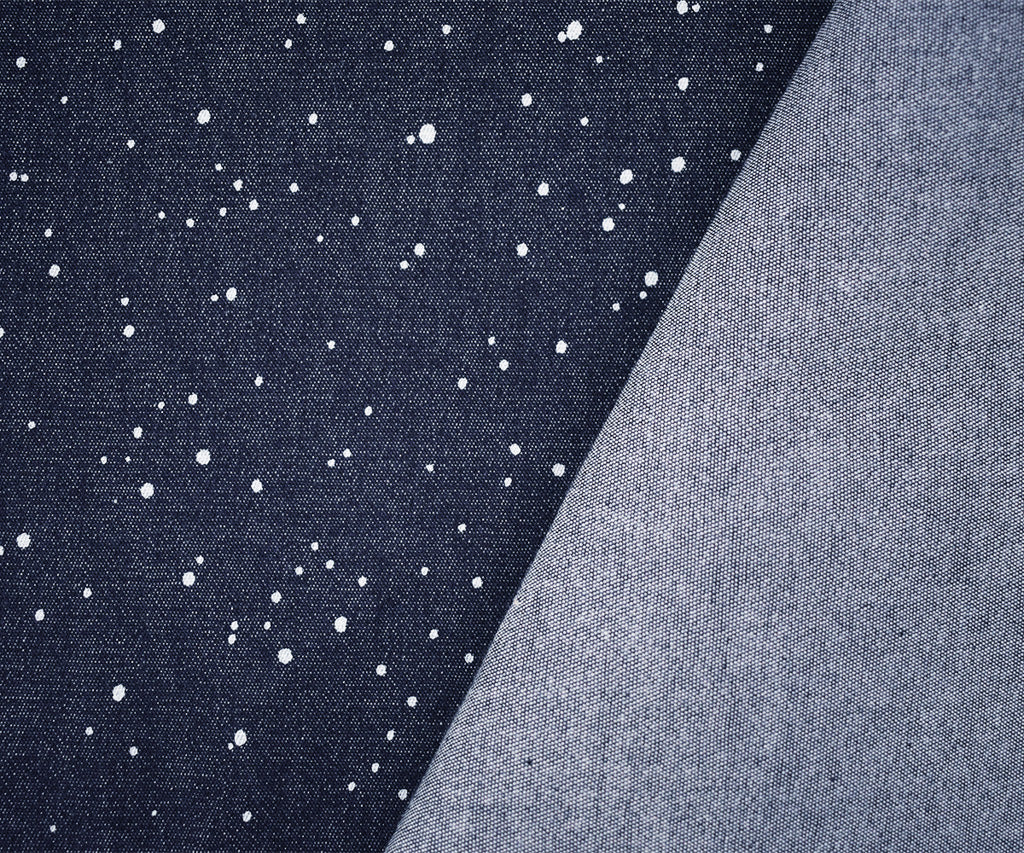 Navy-Multi Abstract Paint Dot Print 8 oz. Stretch Spandex Denim Fabric