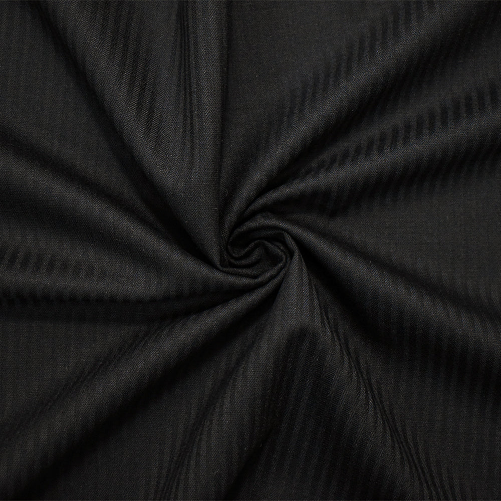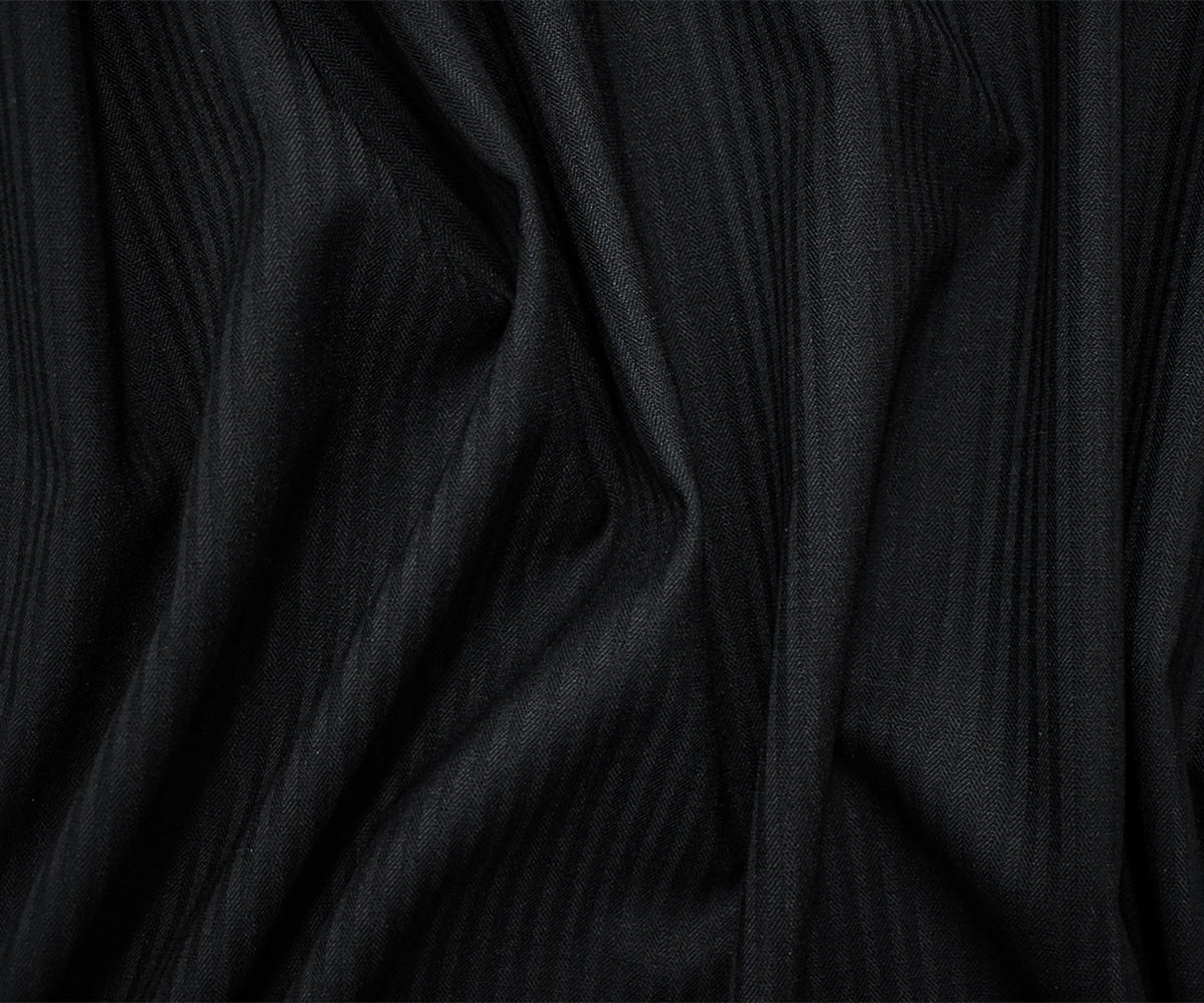 Black Wool Japanese Vertical Stripe Herringbone Woven Fabric