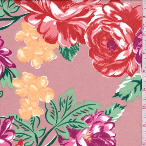Blush/Magenta Peony Floral Double Brushed Jersey Knit Fabric