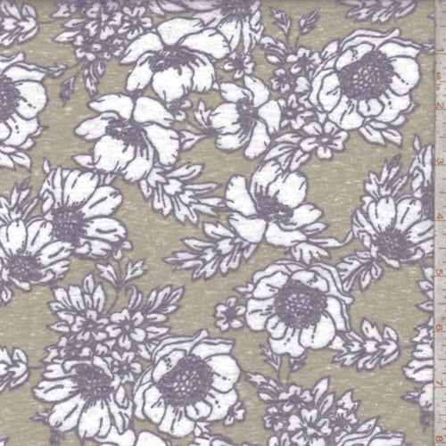 Cocoa Brown Floral Slub Jersey Knit Fabric