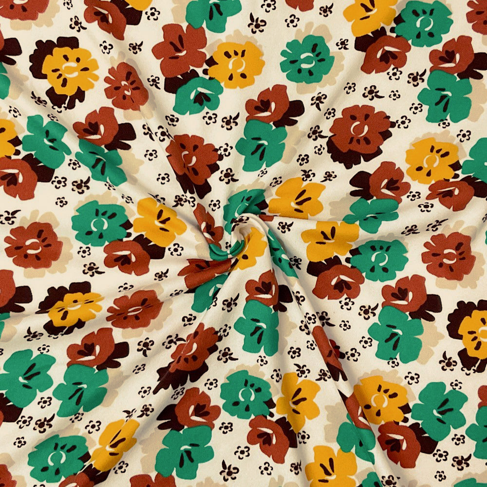 Ivory-Multi Poly Spandex Stretch Floral Print DB Jersey Knit Fabric