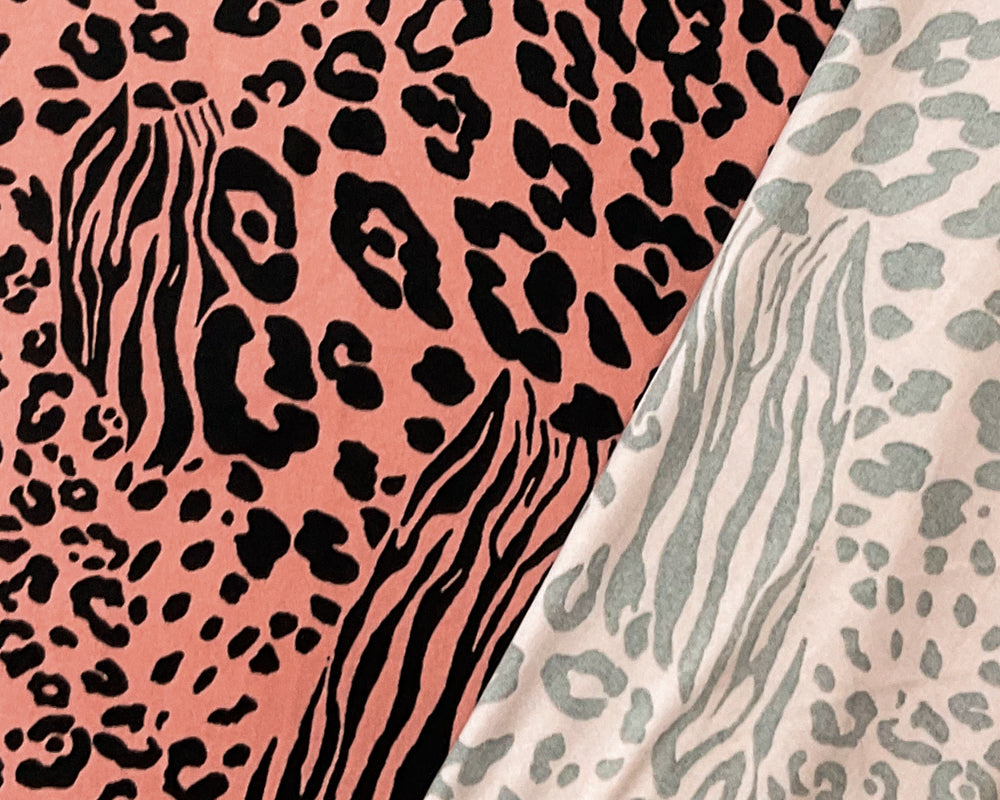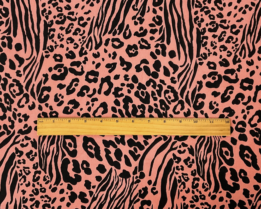 Pink-Black Poly Stretch Leopard Print DB Jersey Knit Fabric
