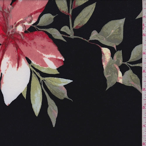 Black/Blush Lily Double Brushed Jersey Knit Fabric