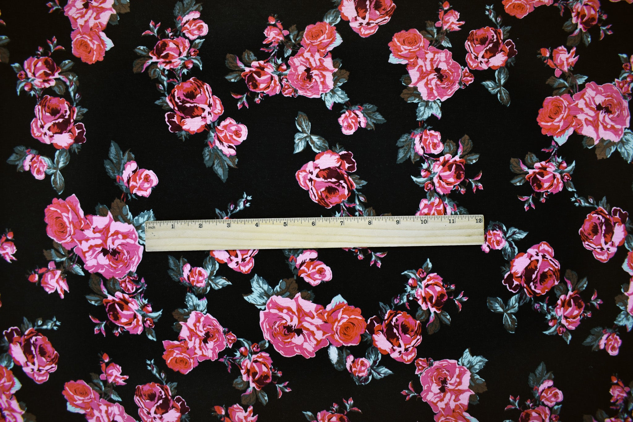 Black-Multi Rayon Stretch Spandex Floral Printed Jersey Knit Fabric