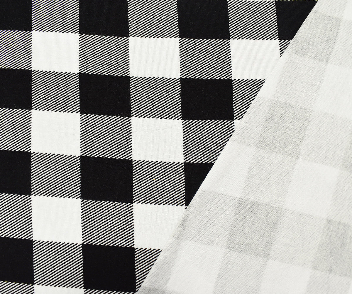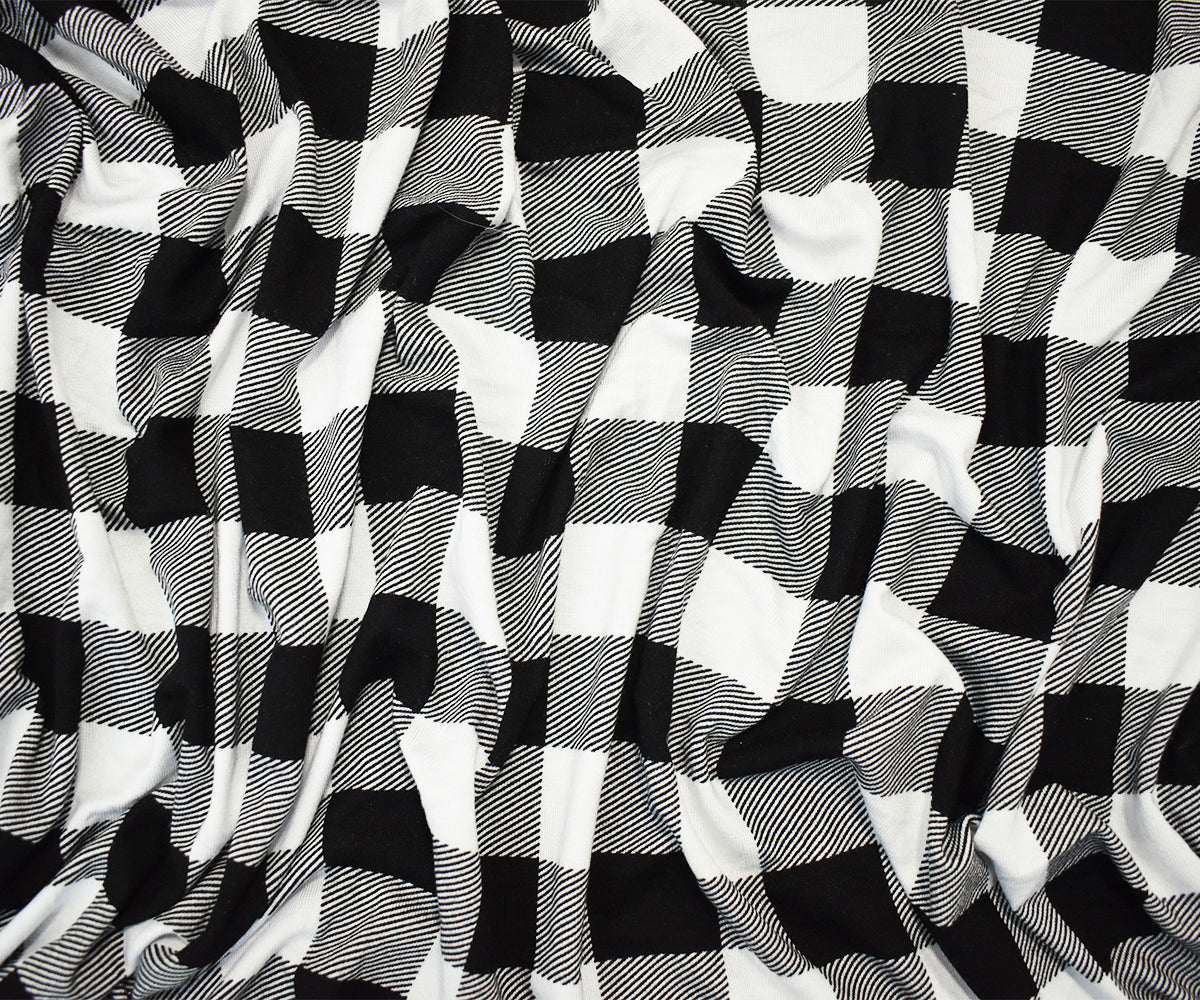 Black-White Rayon Modal Gingham Printed Stretch Spandex Jersey Knit Fabric