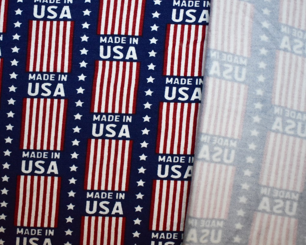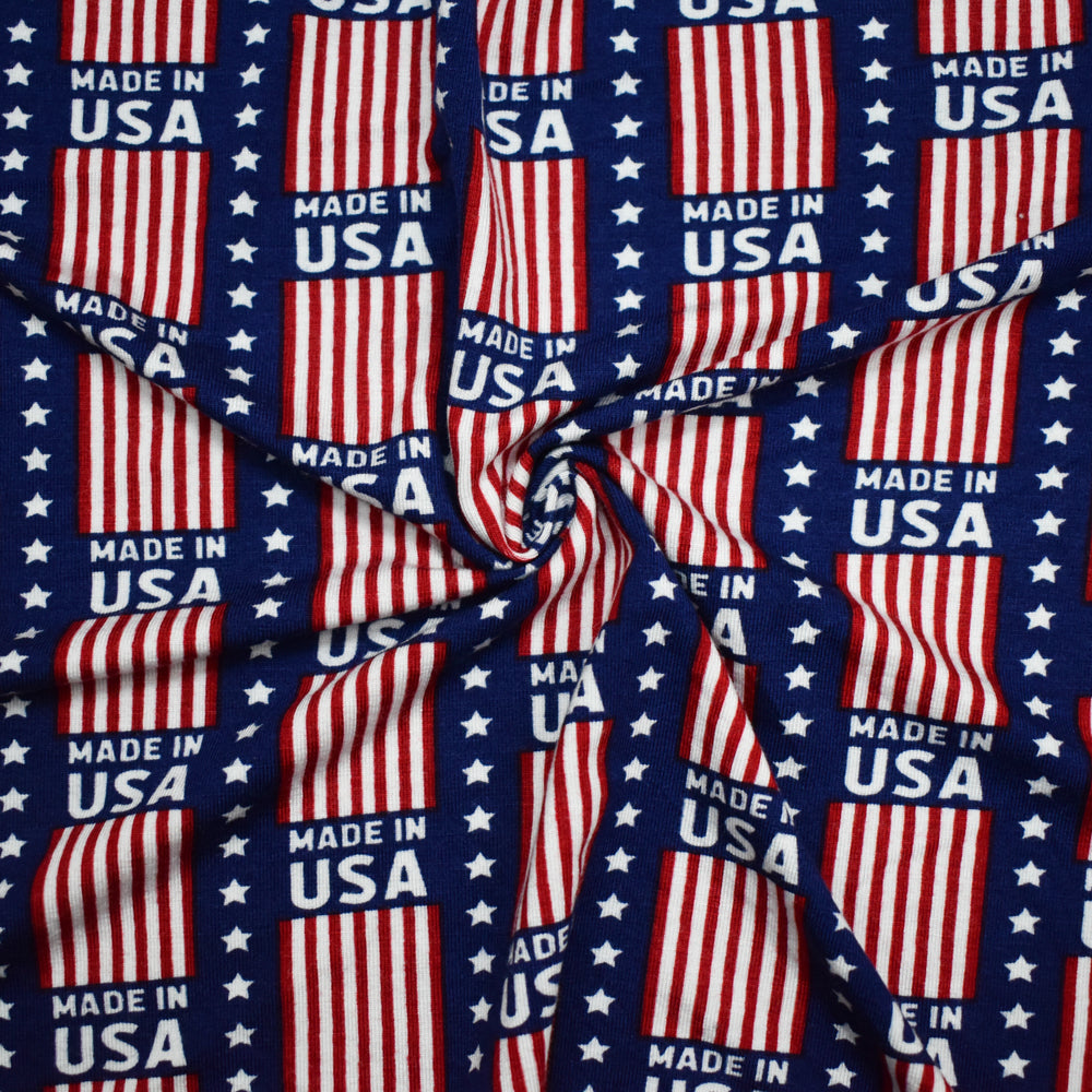 Blue-Red-Multi Rayon Modal USA Print Stretch Spandex Jersey Knit Fabric