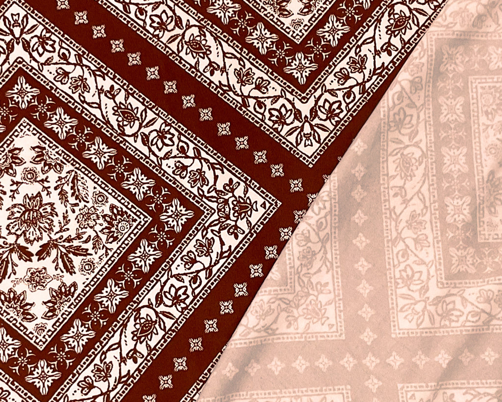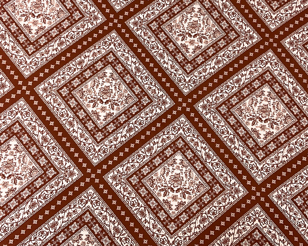 Brown Poly Stretch Spandex Floral Diamond Print DB Jersey Knit Fabric