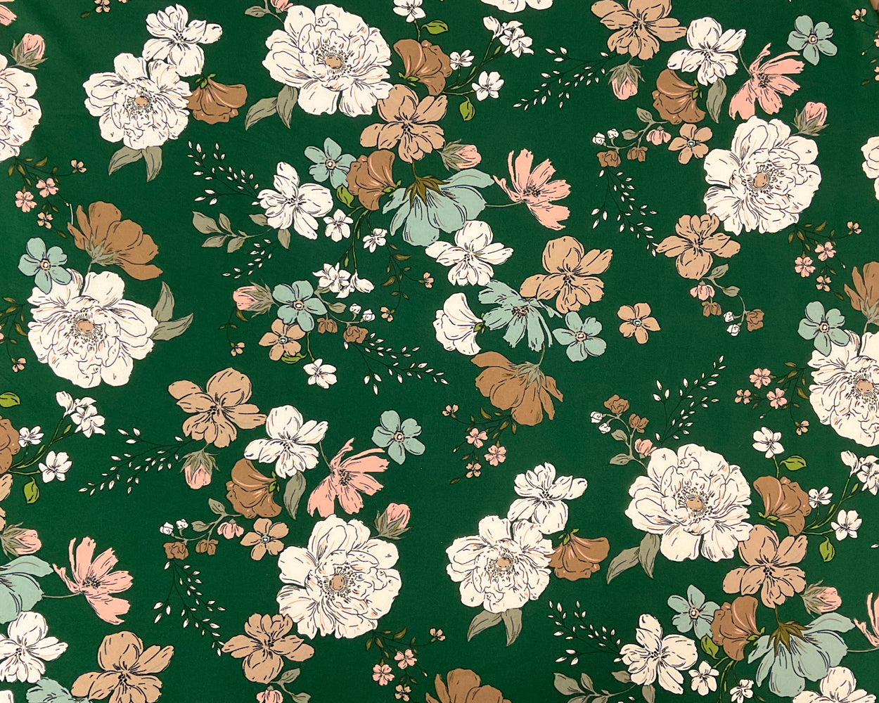 Green-Multi Poly Spandex Stretch Floral Print DB Jersey Knit Fabric
