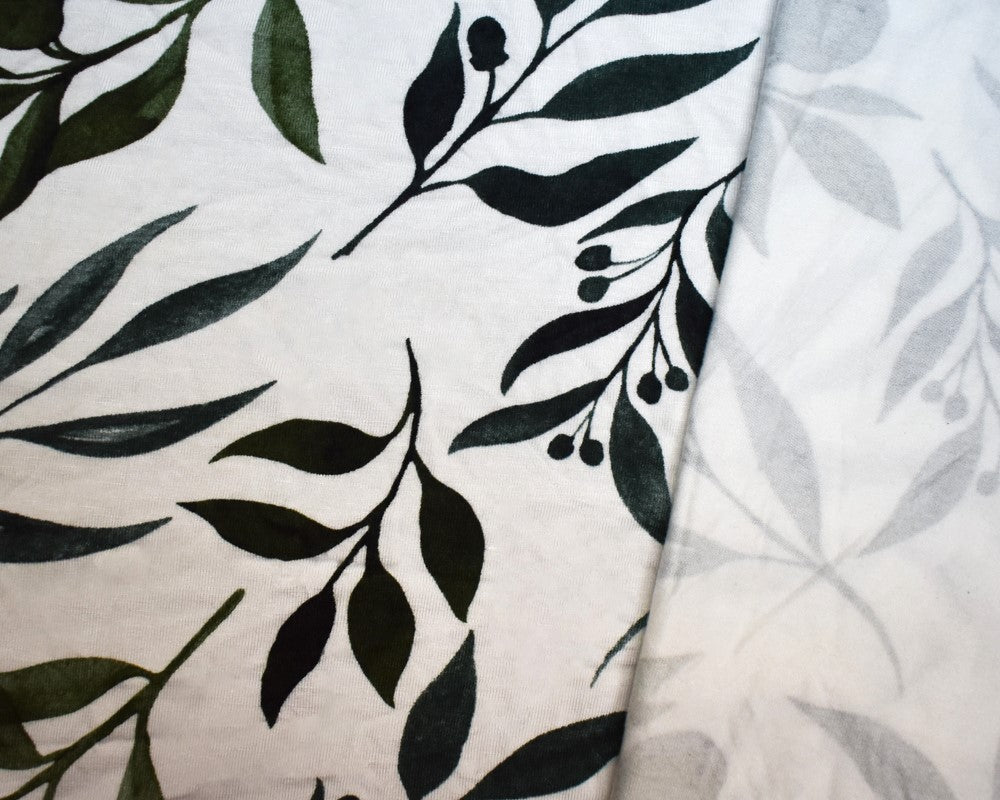 Green-White Rayon Modal Leaves Printed Stretch Spandex Jersey Knit Fabric