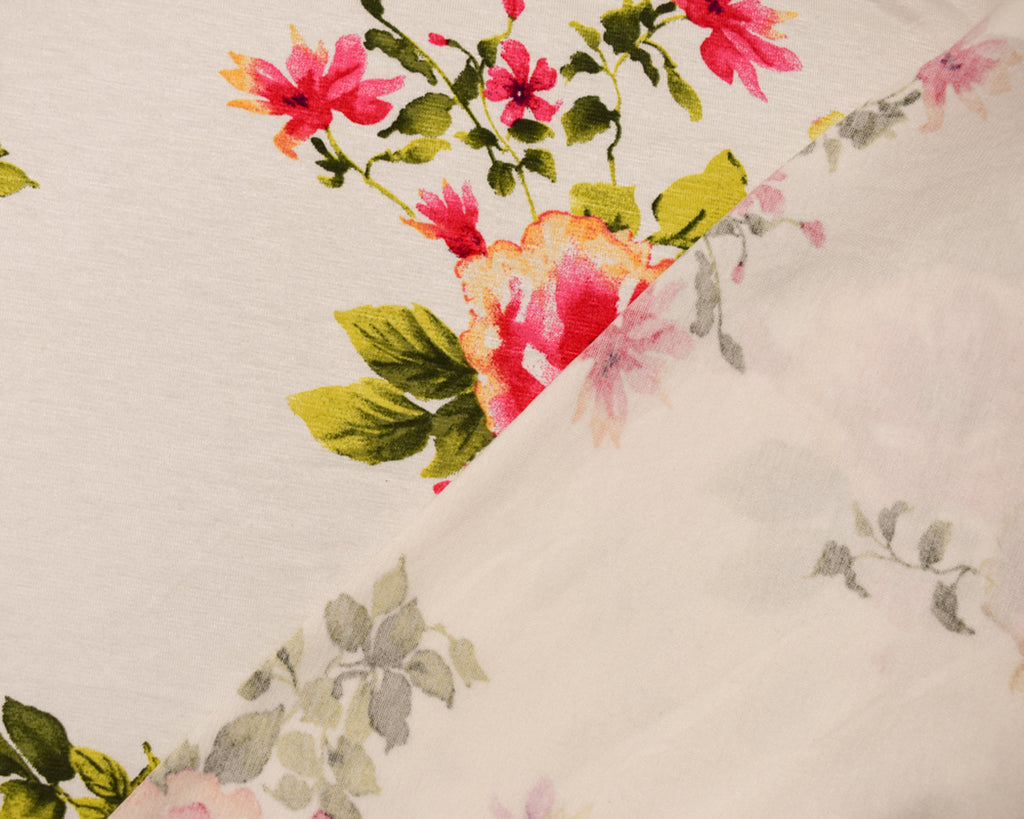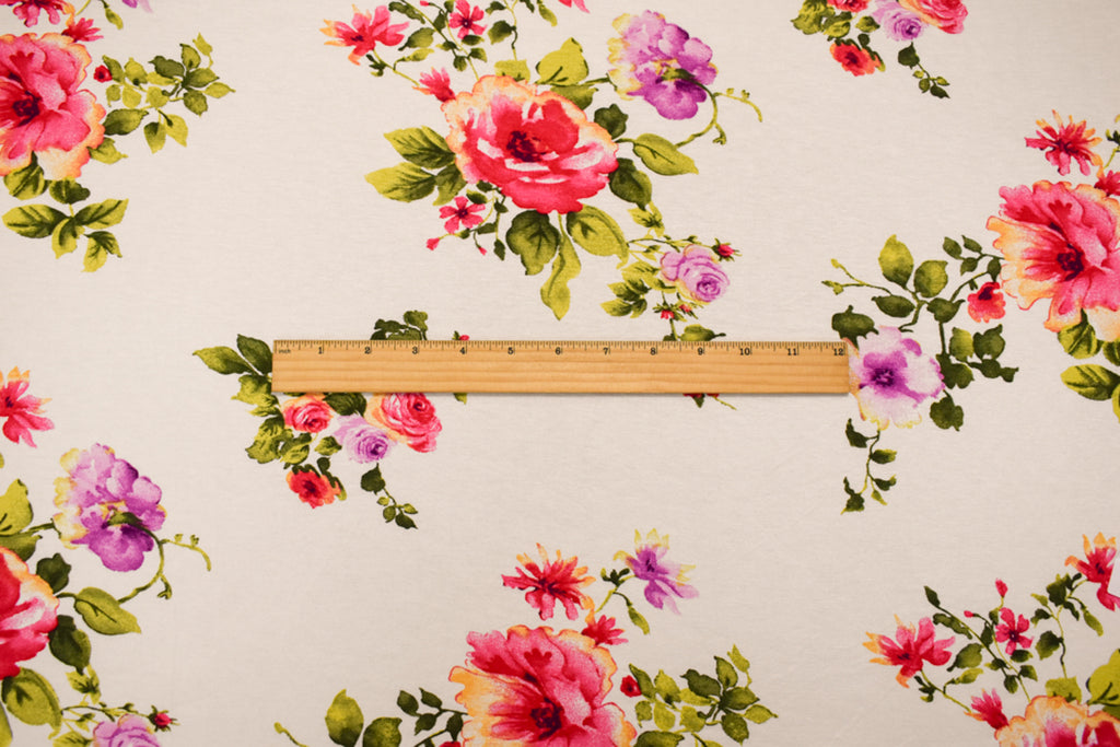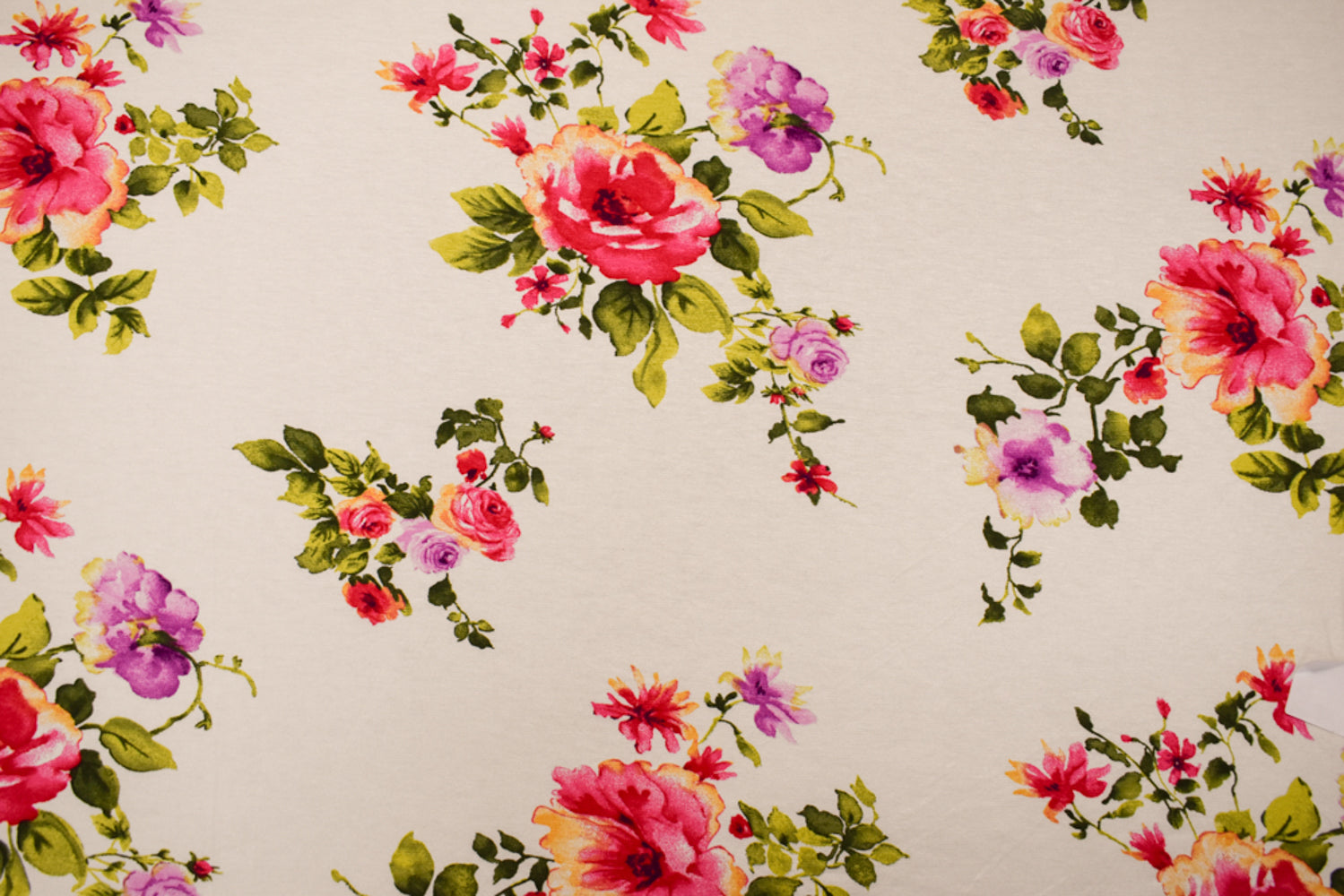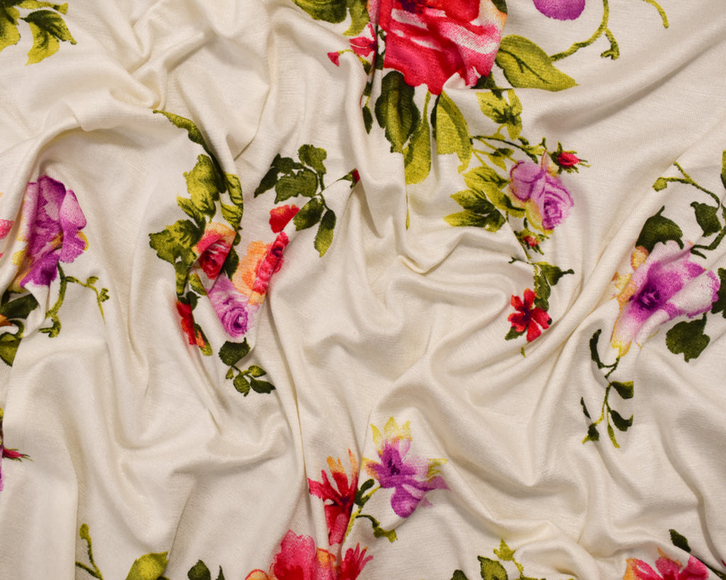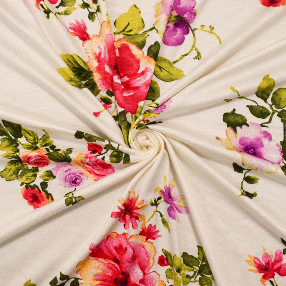 Ivory-Pink-Multi Rayon Modal Floral Printed Stretch Spandex Jersey Knit Fabric