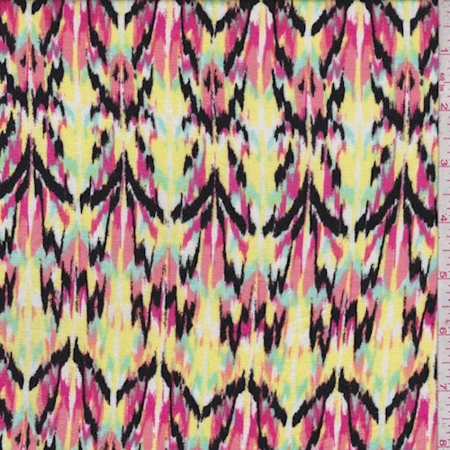 Lemon/Mint/Coral Ikat Abstract Jersey Knit Fabric