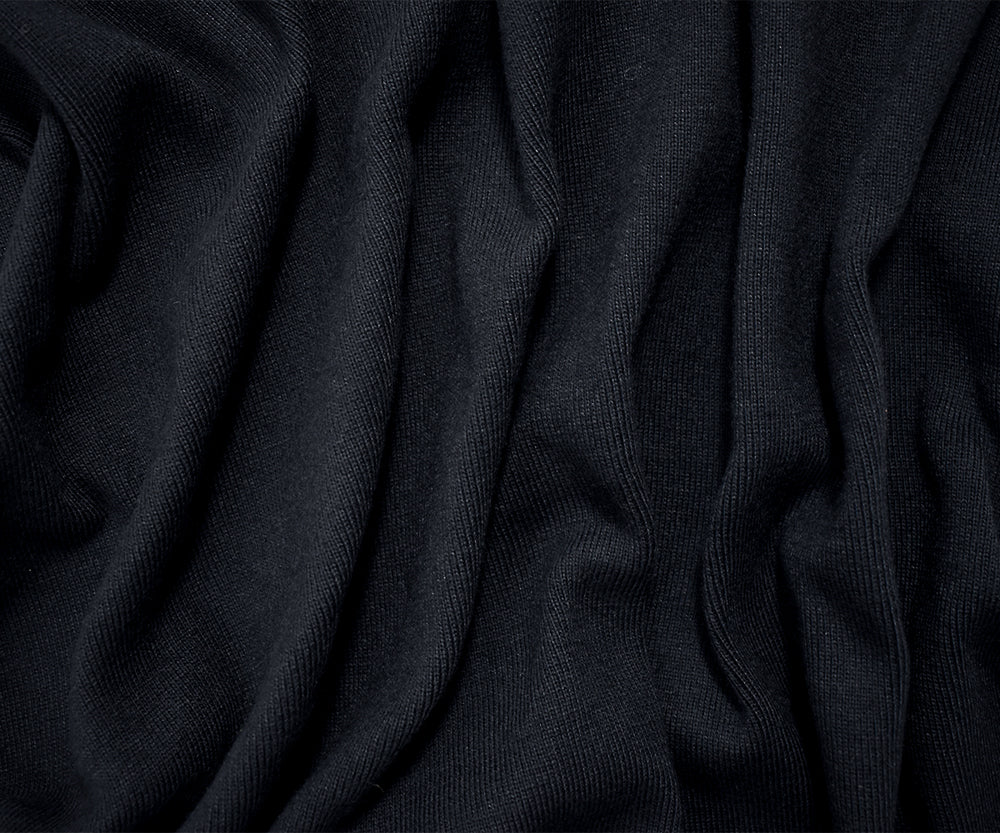 Midnight Navy Blue Poly-Nylon Stretch Spandex 1x1 Rib Knit Fabric