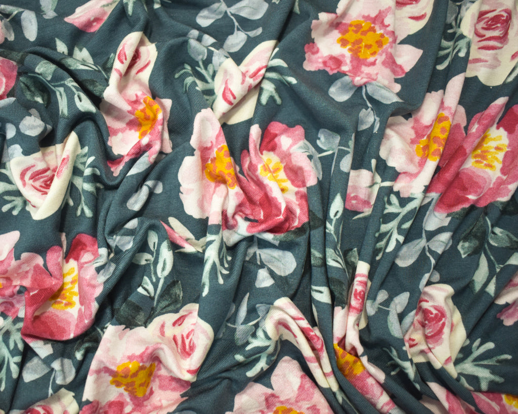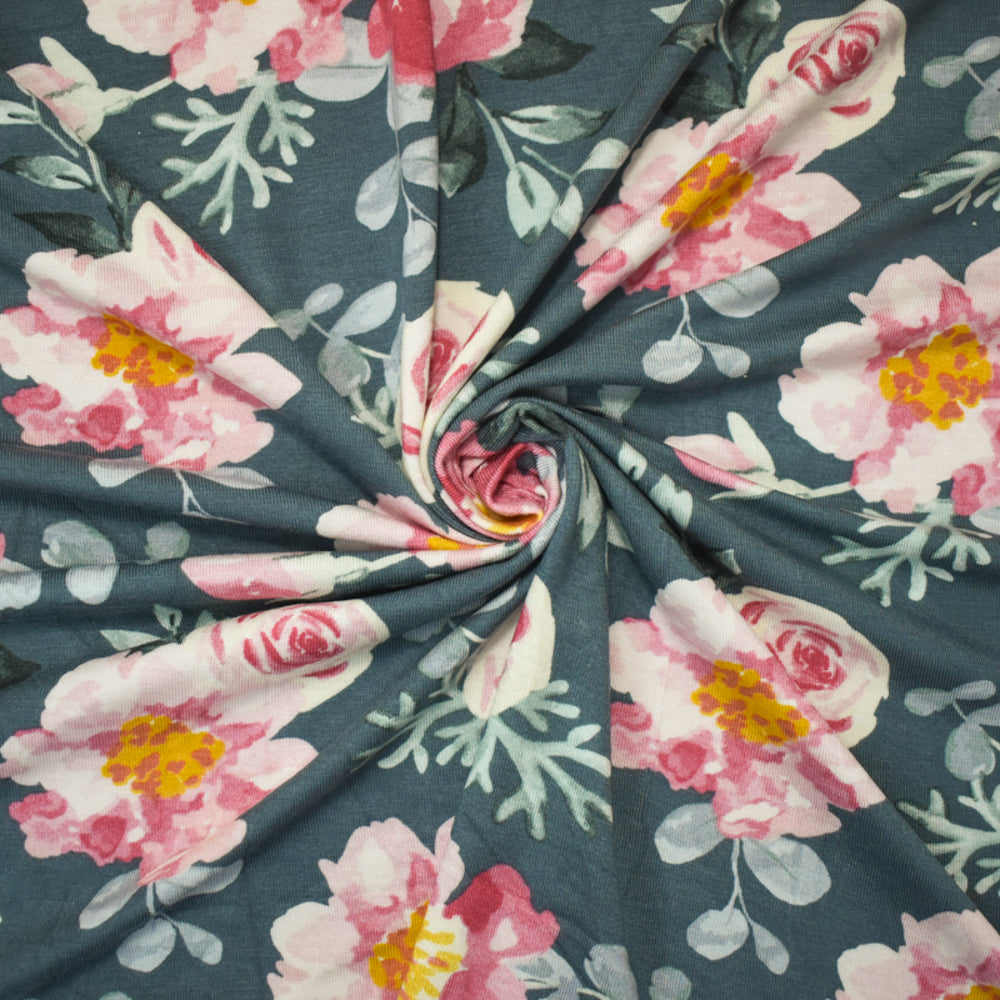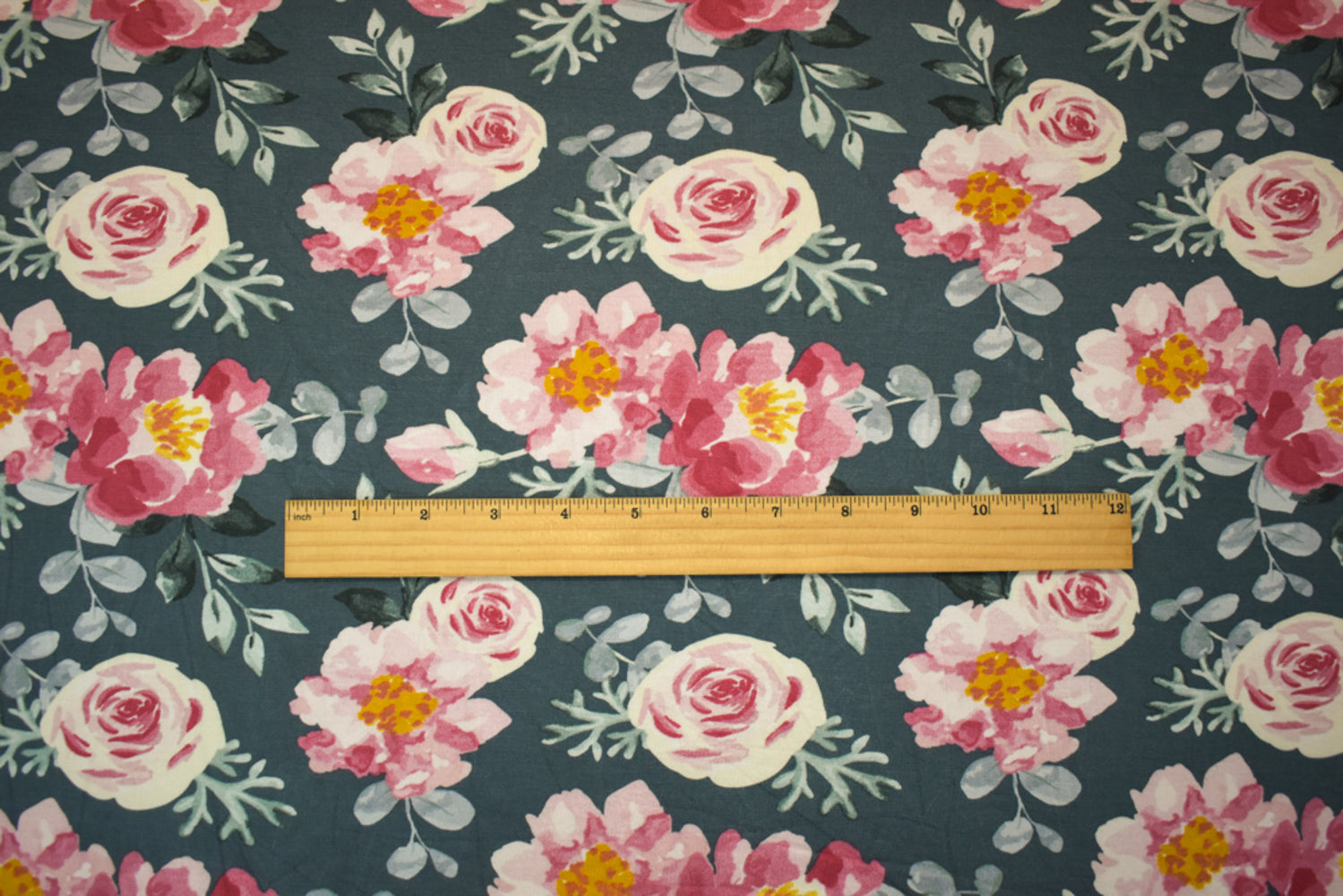 Pink-Teal-Multi Rayon Modal Floral Printed Stretch Spandex Jersey Knit Fabric