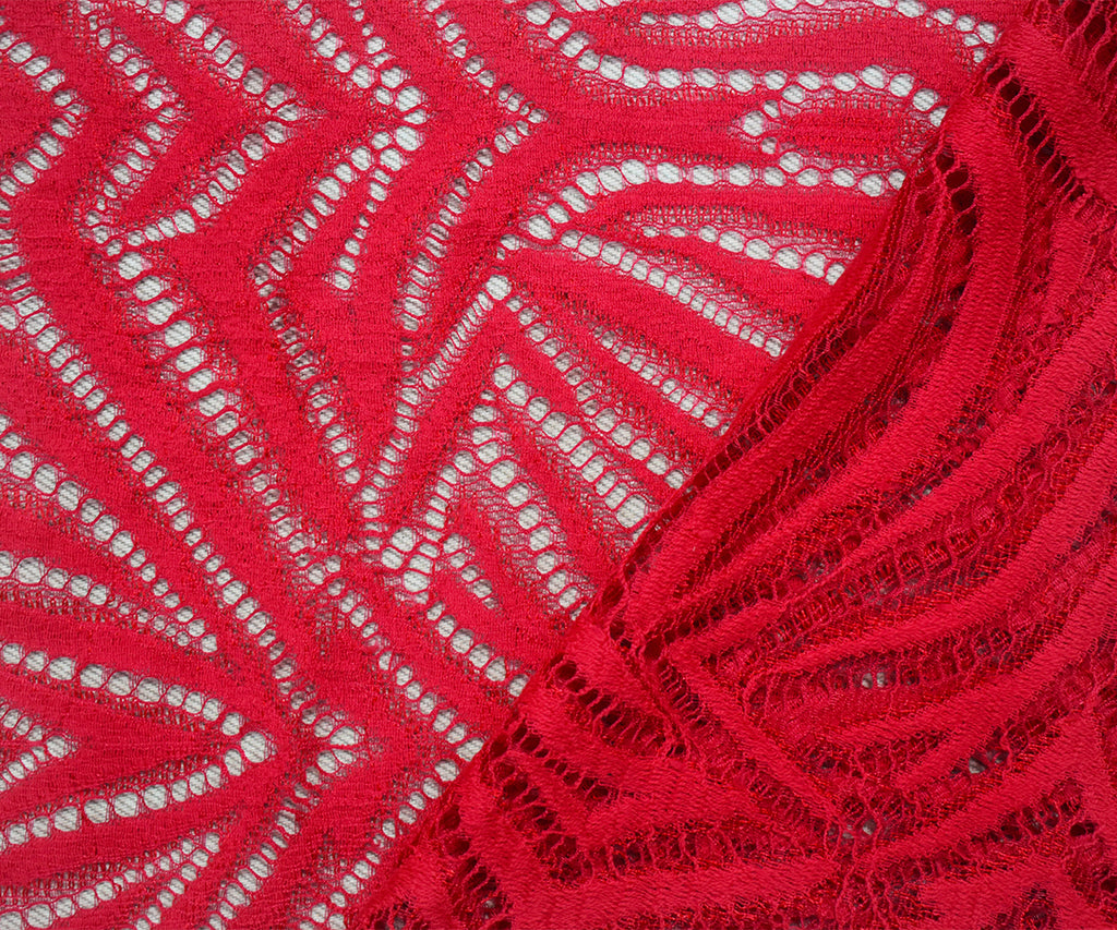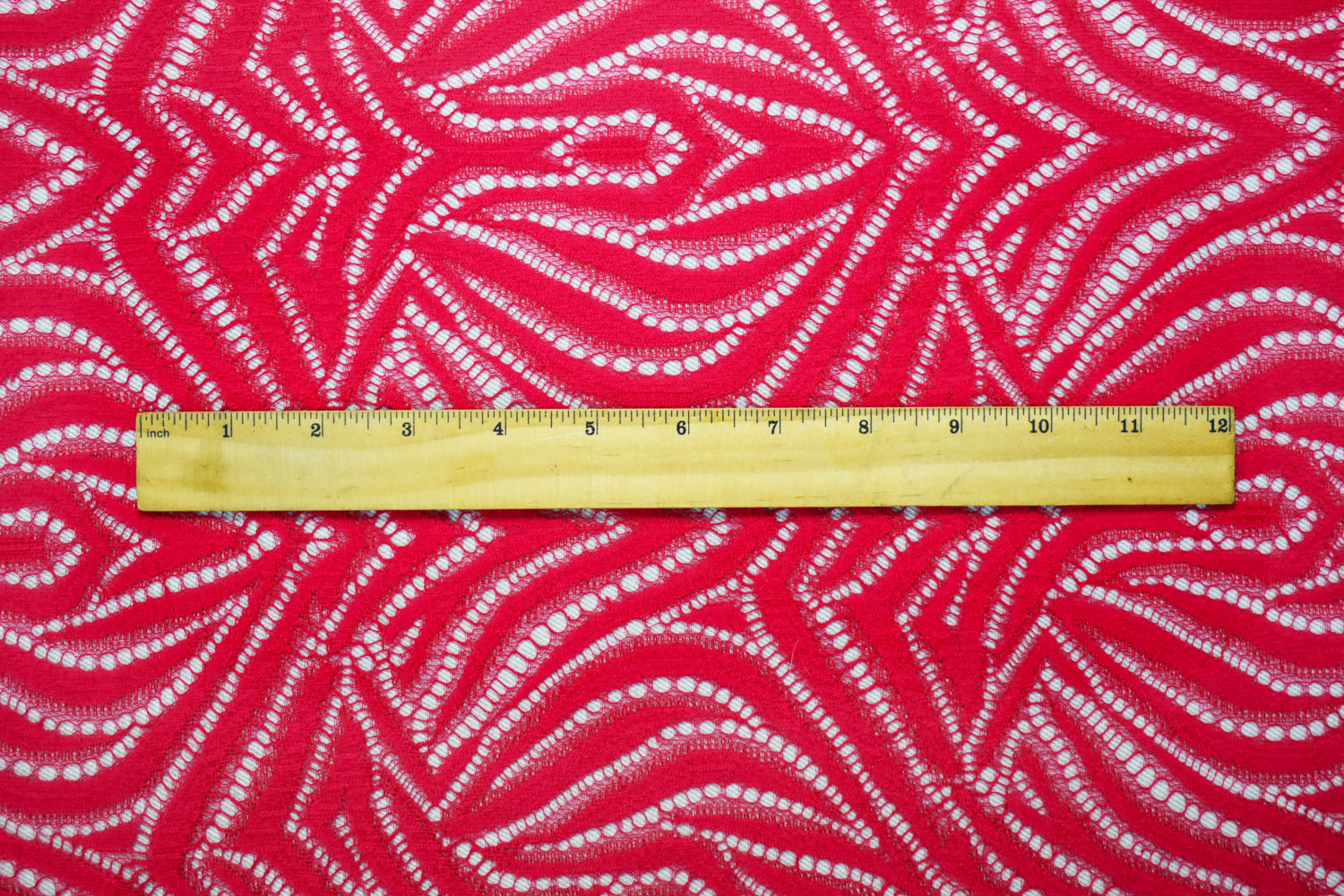 Red Cotton-Polyester Abstract Crochet Lace Knit Fabric