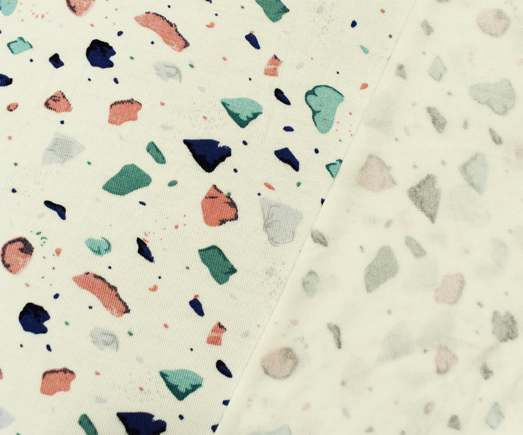 Teal-Multi Rayon Modal Pebbles Print Stretch Spandex Jersey Knit Fabric