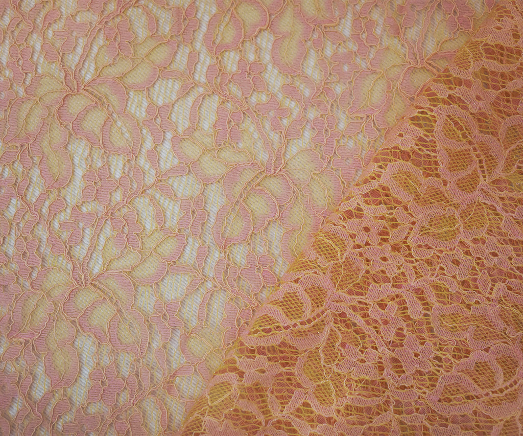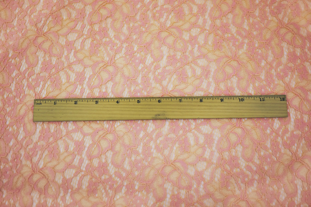 Orange-Pink Poly Cotton Blend Floral Lace Knit Fabric