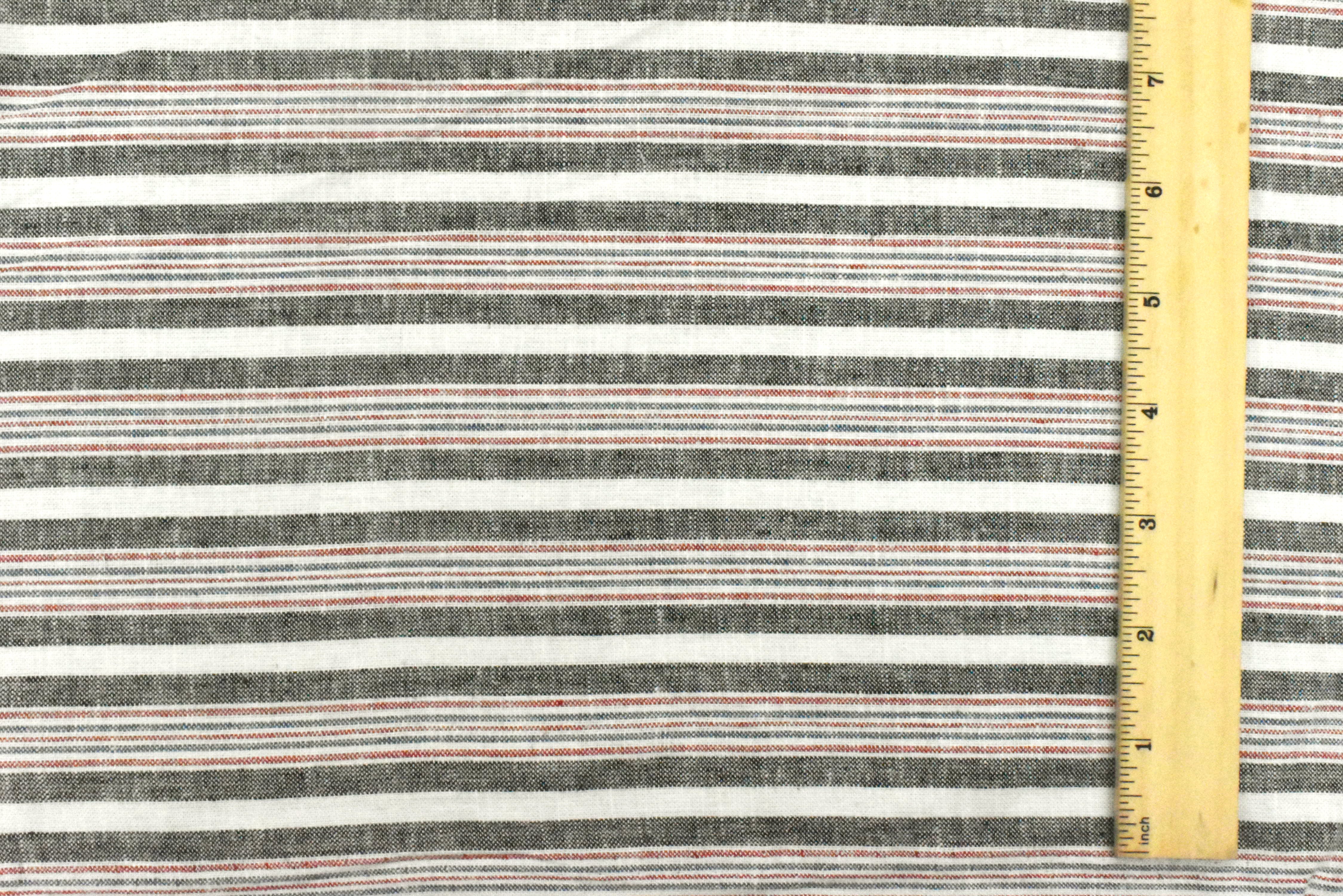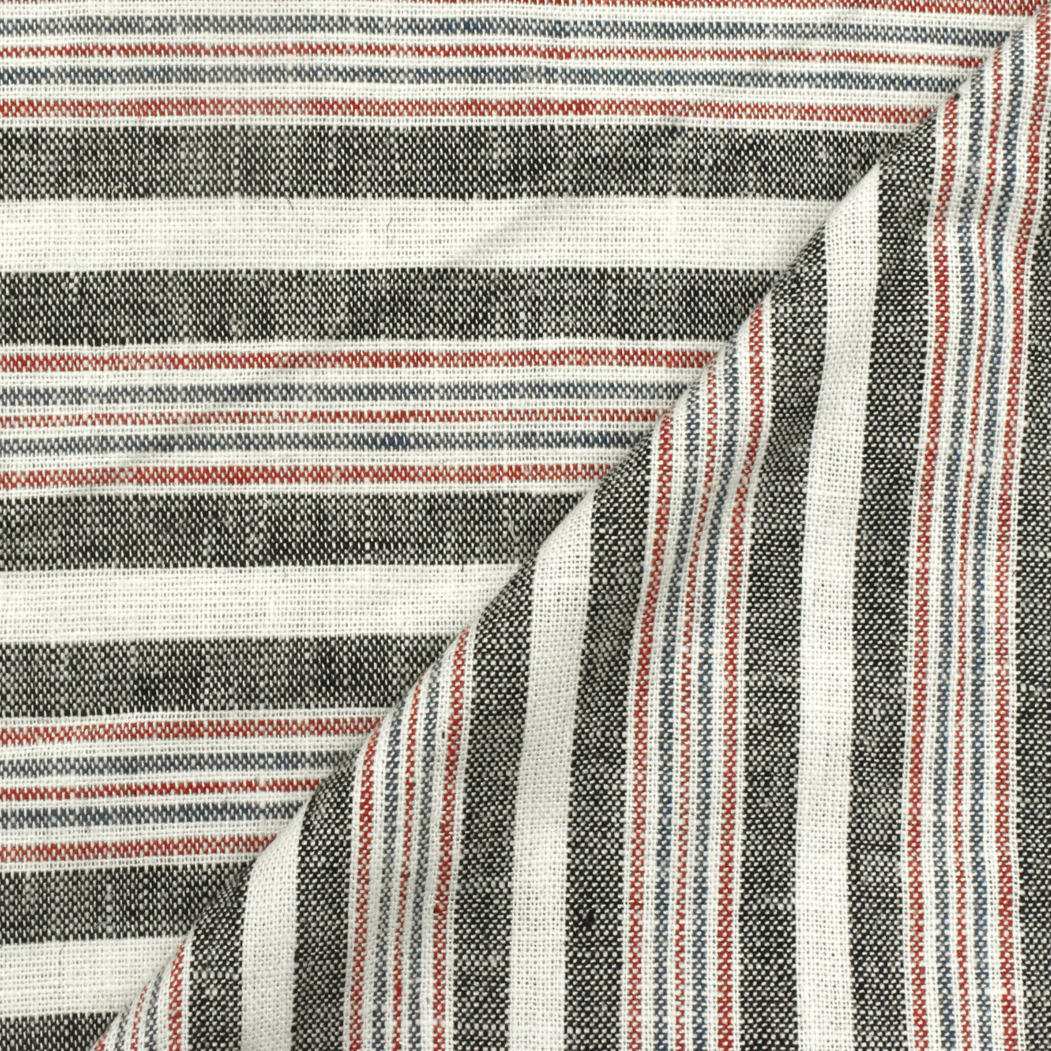 Blue-Red-Multi Striped Cotton-Linen Blend Shirting Fabric