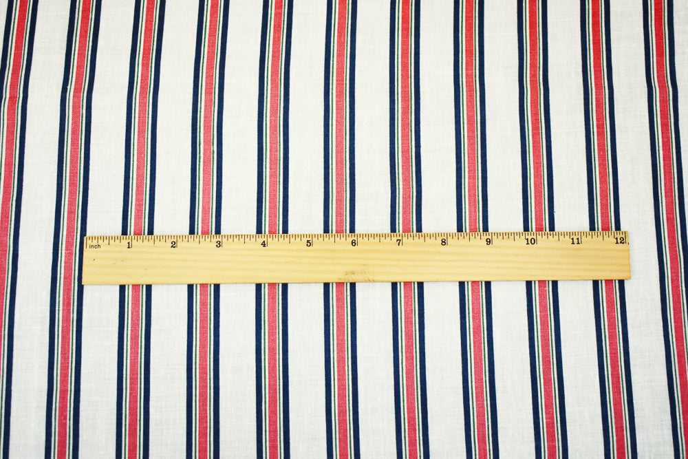 White-Coral Pink-Multi Stripe Printed Linen Woven Fabric