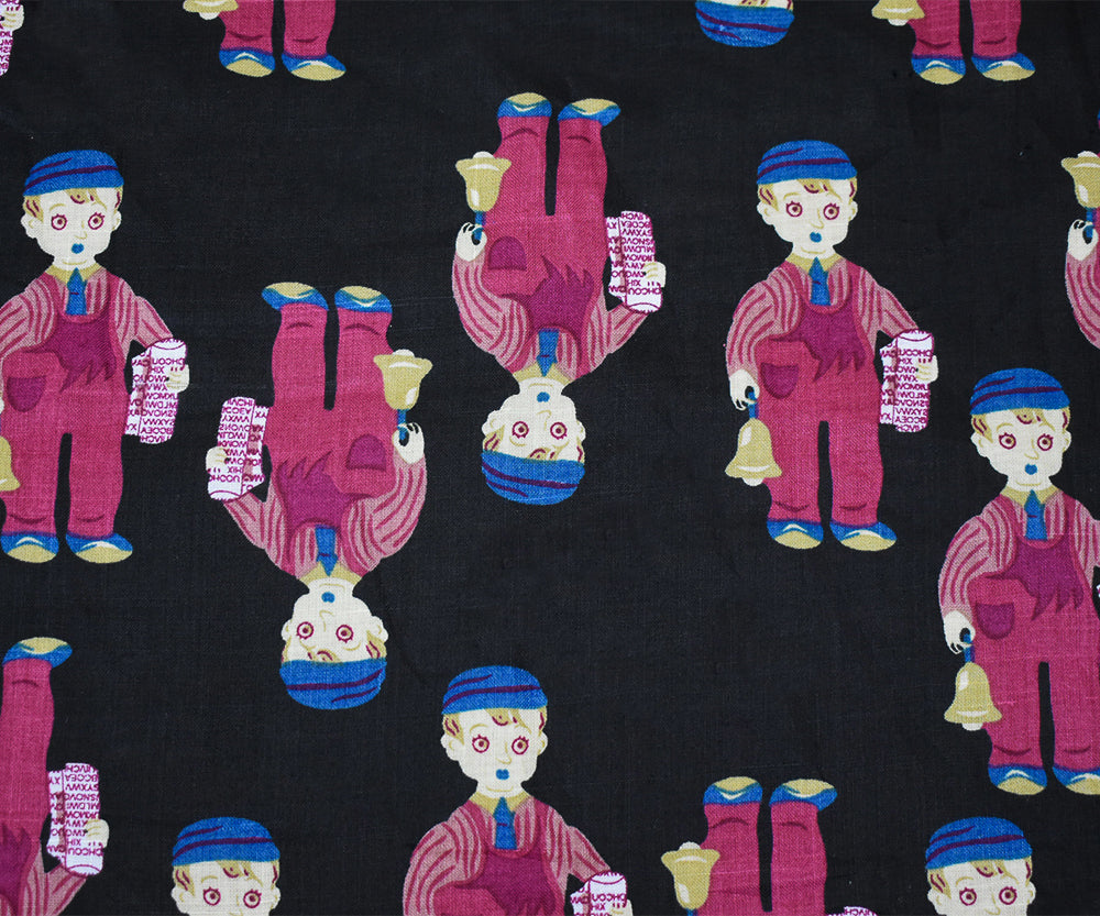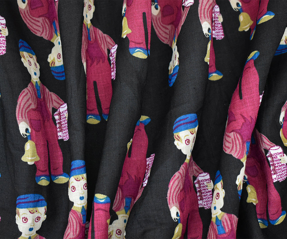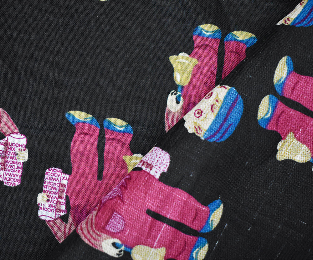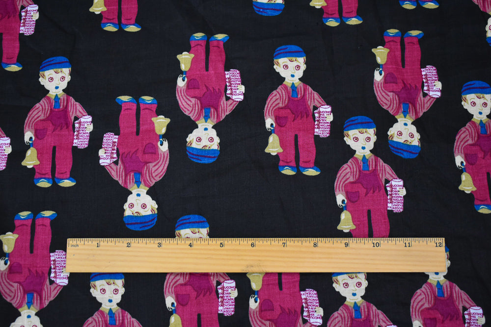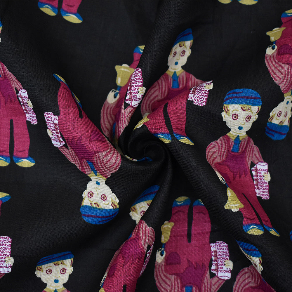 Black-Burgundy-Multi Little Boy Doll Printed Linen Woven Fabric
