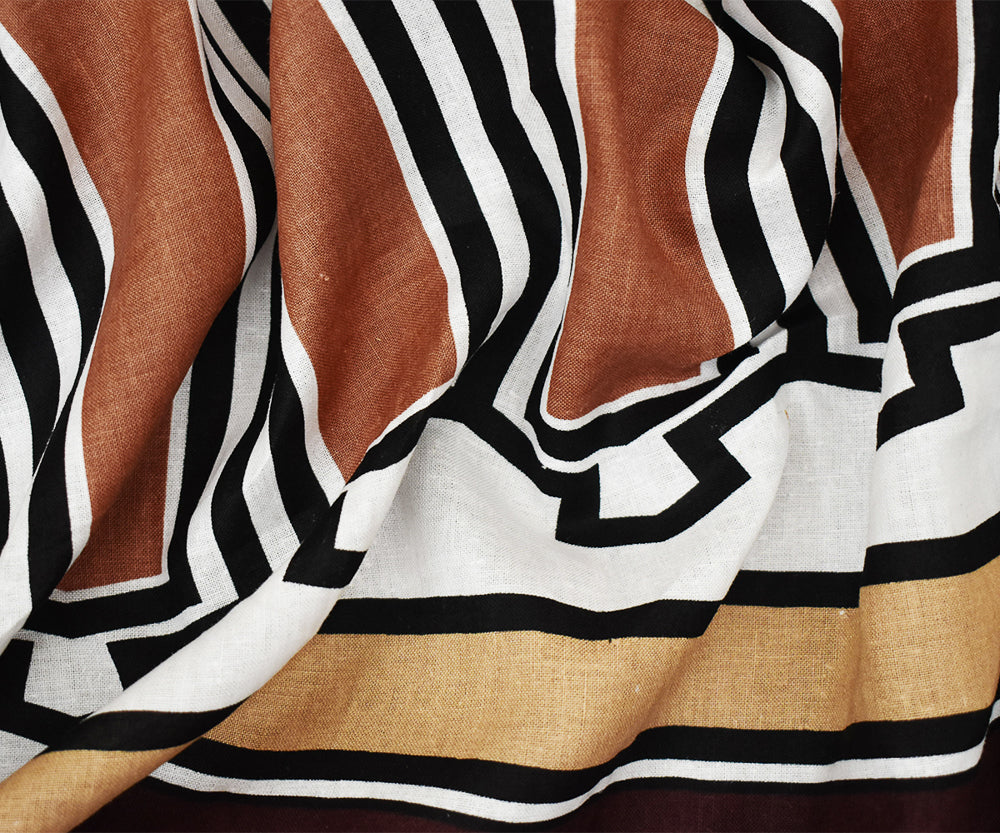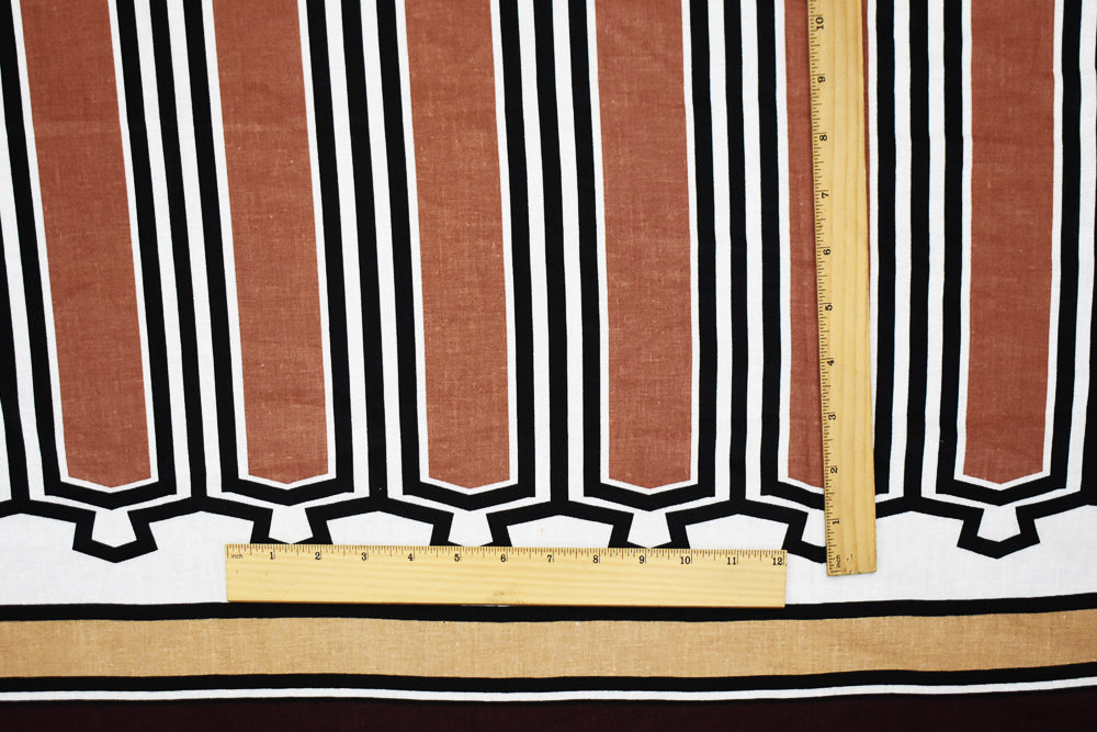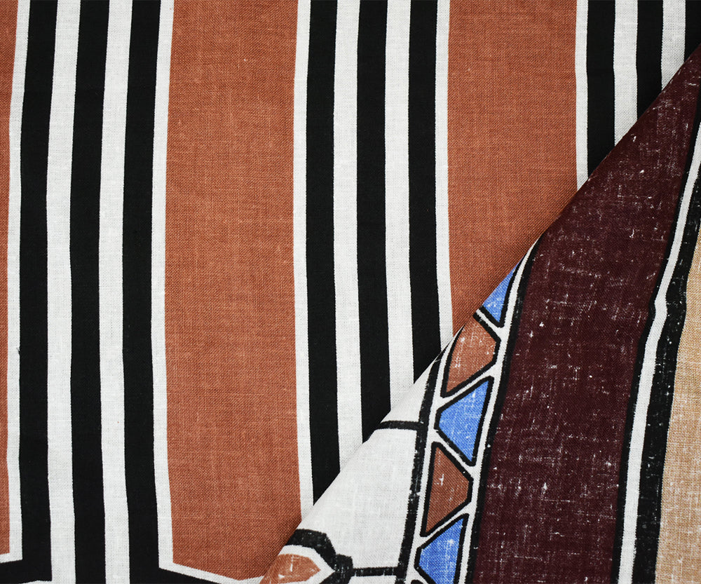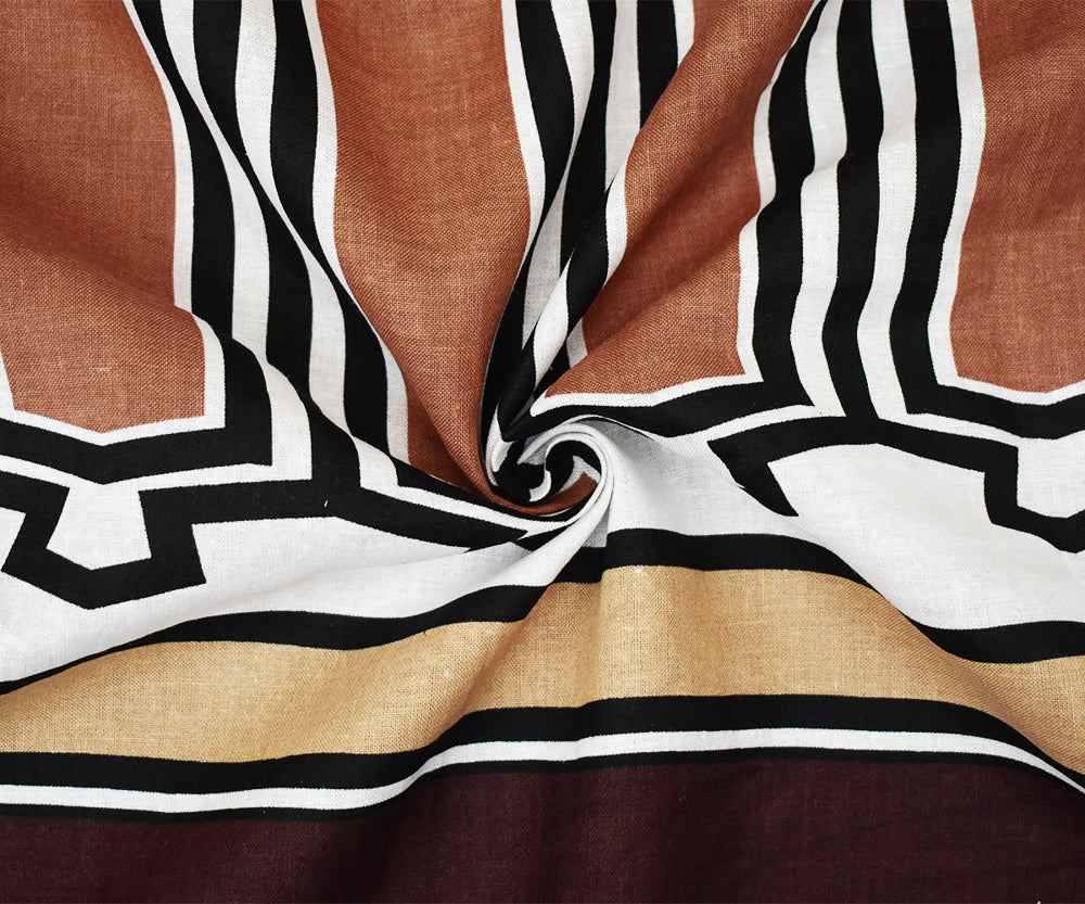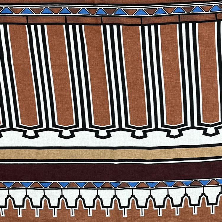 Brown-Beige-Multi Abstract Aztec Pattern Printed Linen Woven Fabric
