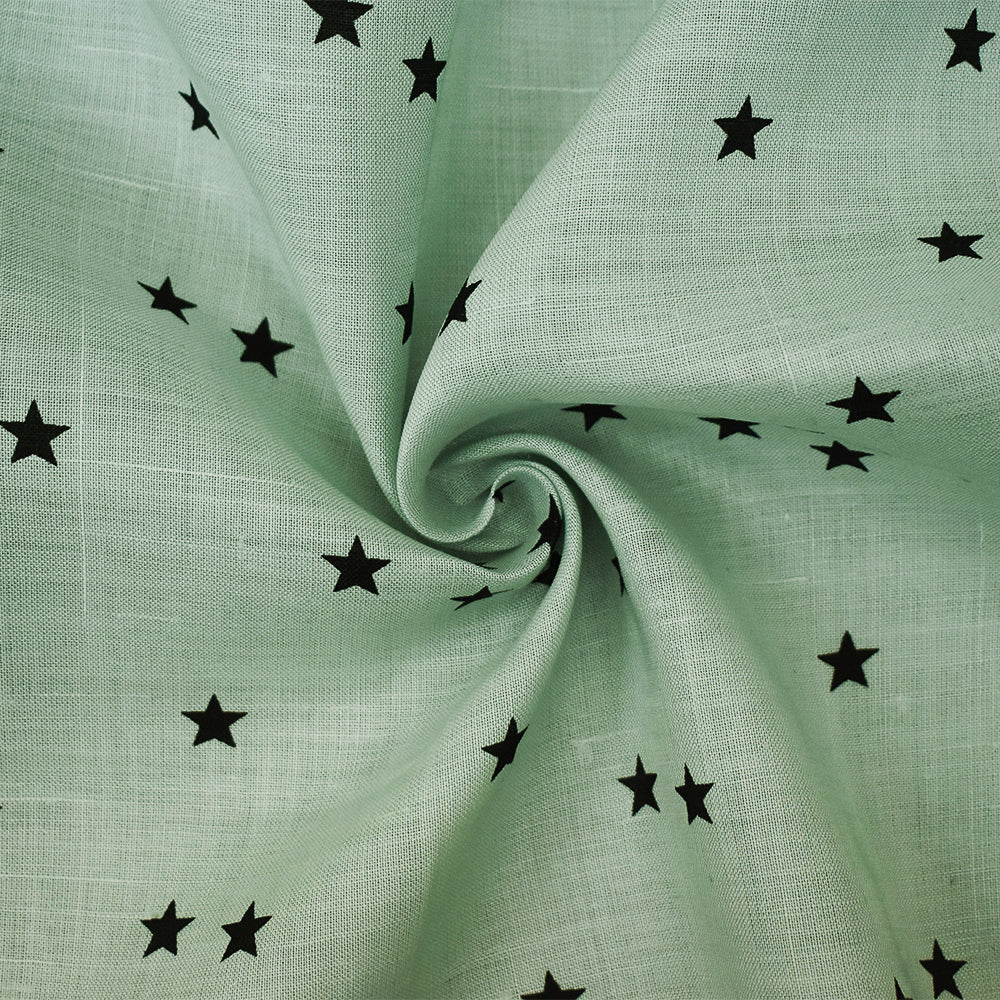 -100% linen plain woven fabric printed with scattered stars. Line if needed.